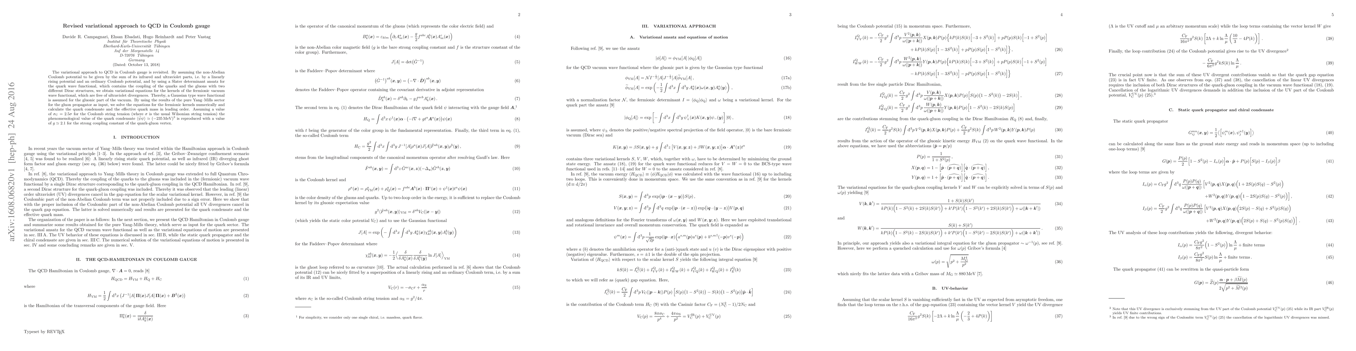 This paper revisits the variational approach to QCD in Coulomb gauge, proposing a new method to obtain ultraviolet divergence-free equations for fermionic vacuum wave functional kernels. The study calculates the quark condensate and effective quark mass, reproducing the phenomenological value of the quark condensate with a suitable strong coupling constant.