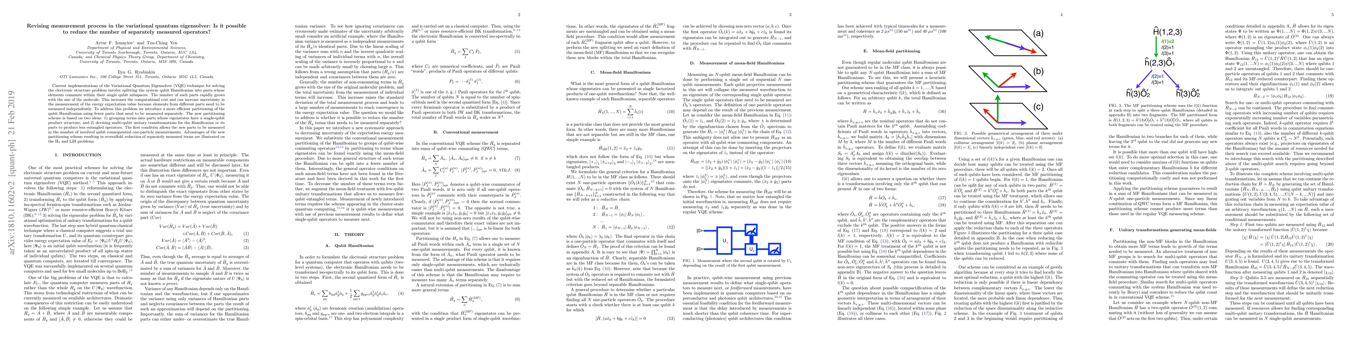 This paper proposes a new partitioning scheme for the Variational Quantum Eigensolver (VQE) to reduce the number of separately measured operators, aiming to decrease measurement uncertainty. The scheme groups terms into parts with single-qubit product structure and uses multi-qubit unitary transformations to minimize entanglement, demonstrating significant reductions in the H2 and LiH problems.