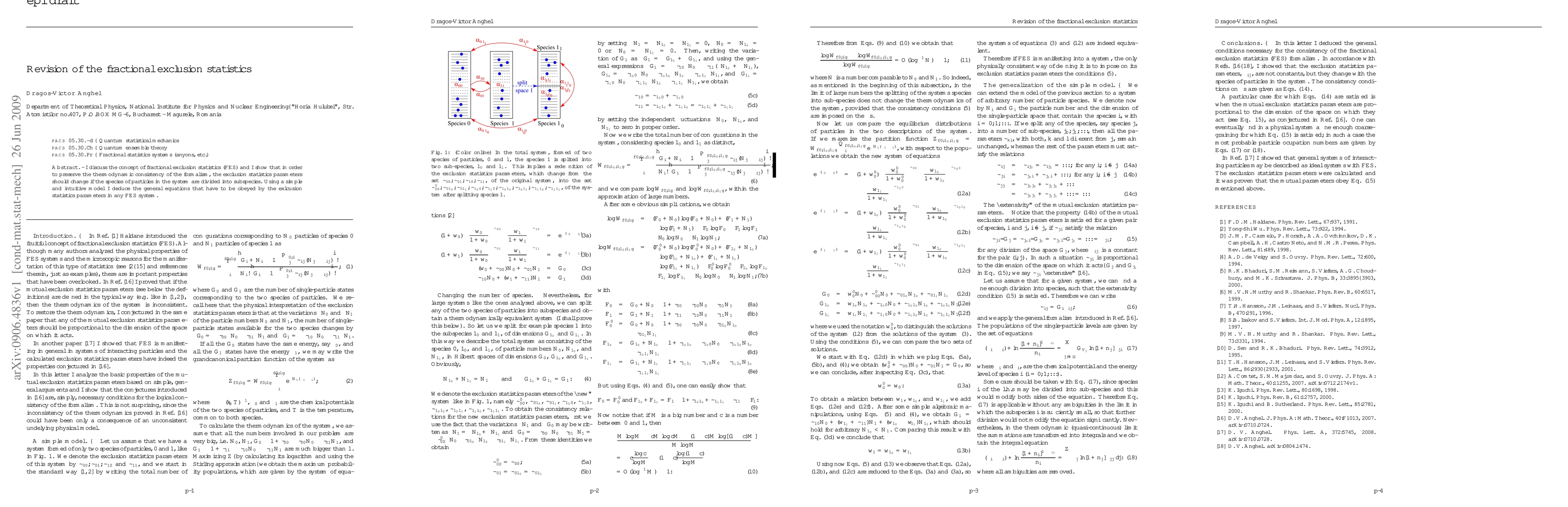 Summary: This paper revises the concept of fractional exclusion statistics (FES), demonstrating that the exclusion parameters must adjust when particle species are subdivided. It derives general equations governing these parameters to maintain thermodynamic consistency in any FES system.