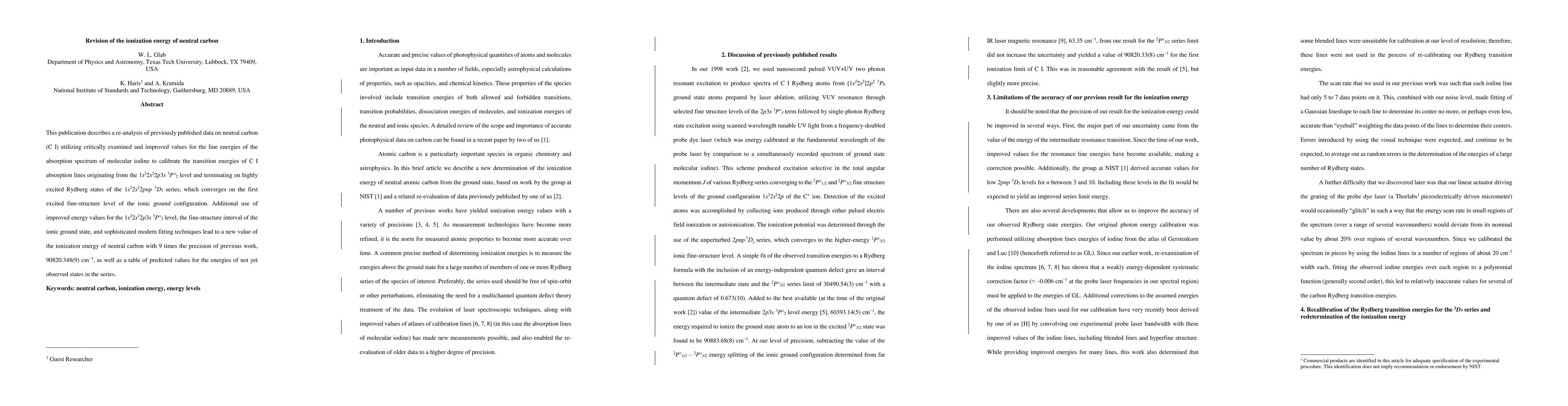 Researchers recalculated the ionization energy of neutral carbon with improved data and methods, achieving 9 times higher precision than previous work, resulting in a new value of 90820.348 cm^-1.