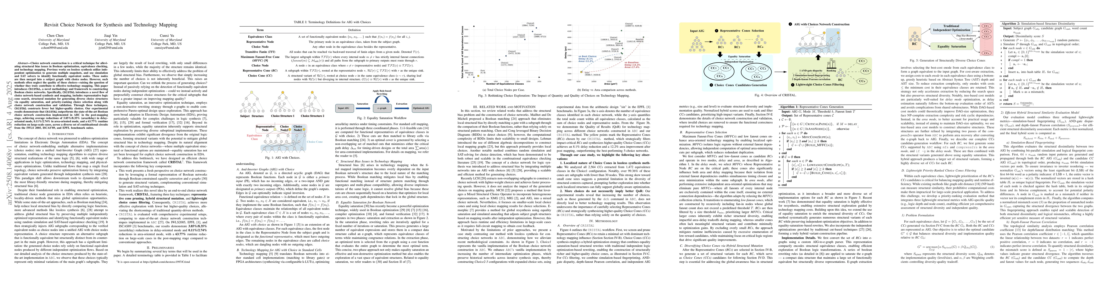 Choice network construction is a critical technique for alleviating structural bias issues in Boolean optimization, equivalence checking, and technology mapping. Previous works on lossless synthesis utilize independent optimization to generate multiple snapshots, and use simulation and SAT solvers to identify functionally equivalent nodes. These nodes are then merged into a subject graph with choice nodes. However, such methods often neglect the quality of these choices, raising the question of whether they truly contribute to effective technology mapping. This paper introduces Cristal, a novel methodology and framework for constructing Boolean choice networks. Specifically, Cristal introduces a new flow of choice network-based synthesis and mapping, including representative logic cone search, structural mutation for generating diverse choice structures via equality saturation, and priority-ranking choice selection along with choice network construction and validation. Through these techniques, Cristal constructs fewer but higher-quality choices. Our experimental results demonstrate that Cristal outperforms the state-of-the-art Boolean choice network construction implemented in ABC in the post-mapping stage, achieving average reductions of 3.85%/8.35% (area/delay) in delay-oriented mode, 0.11%/2.74% in area-oriented mode, and a 63.77% runtime reduction on large-scale cases across a diverse set of combinational circuits from the IWLS 2005, ISCAS'89, and EPFL benchmark suites.