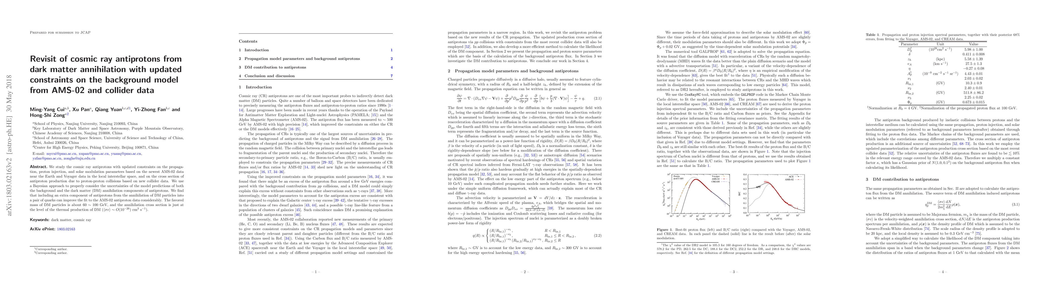 This paper revisits cosmic ray antiprotons potentially from dark matter annihilation, incorporating updated AMS-02 and collider data constraints. A Bayesian approach reveals that dark matter annihilation into quarks can significantly improve the fit to AMS-02 data, favoring dark matter masses between $60\sim100$ GeV.
