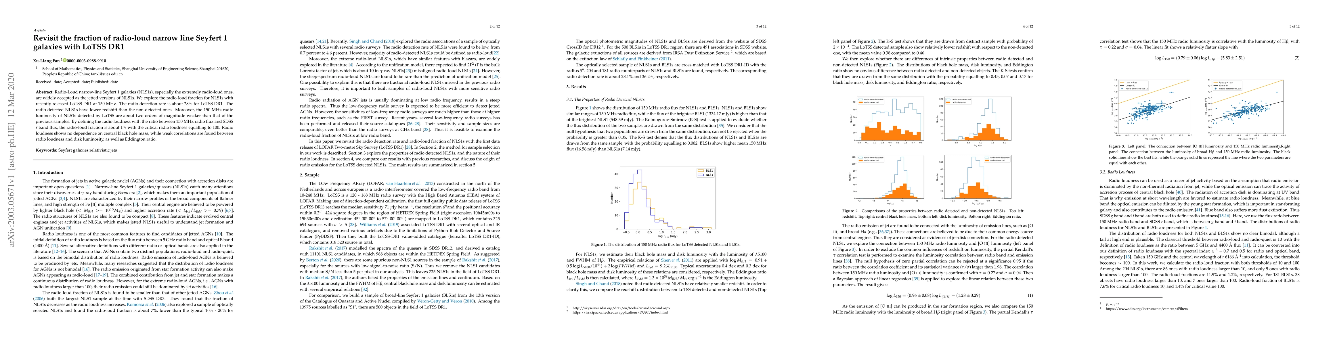 This paper investigates the radio-loud fraction of narrow-line Seyfert 1 galaxies (NLS1s) using the LoTSS DR1 catalog at 150 MHz, finding a detection rate of about 28%. The study reveals that radio-detected NLS1s have lower redshifts and weaker radio luminosities compared to previous samples.