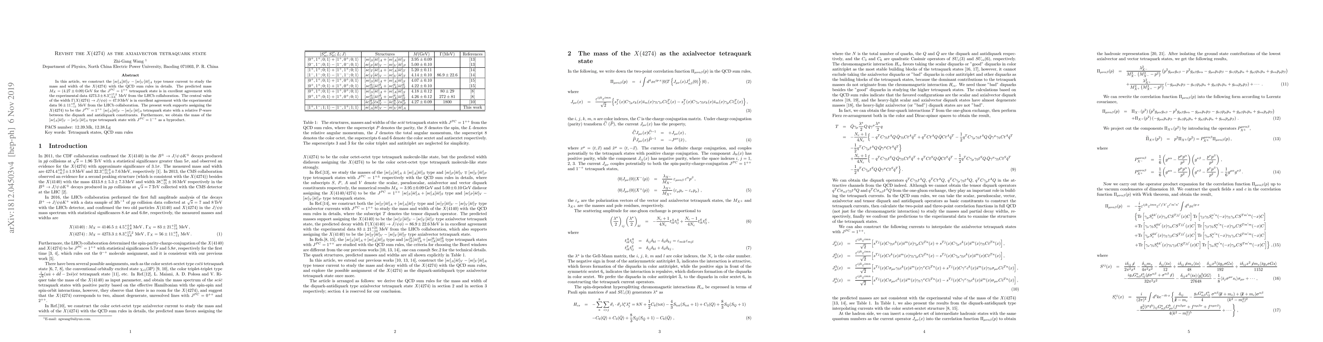 Researchers validate the X(4274) as a 1++ tetraquark state with a predicted mass in agreement with experimental data, supporting its assignment to this configuration.