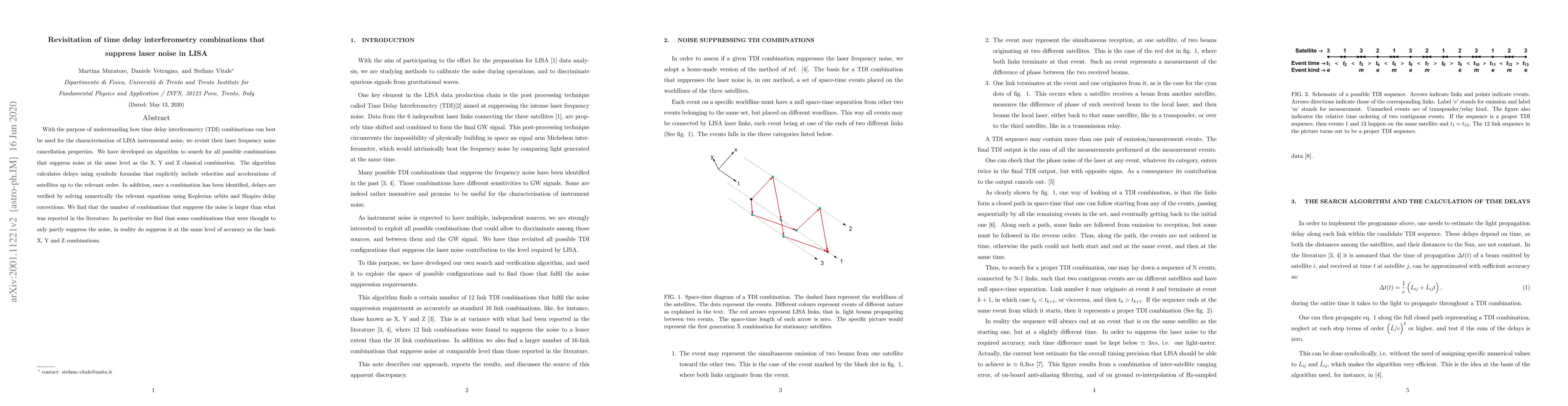 This paper revisits the laser frequency noise cancellation properties of time delay interferometry (TDI) combinations for the Laser Interferometer Space Antenna (LISA). The authors develop an algorithm to identify combinations that suppress noise as effectively as the classical X, Y, and Z combinations, finding that more combinations achieve this level of noise suppression than previously reported.