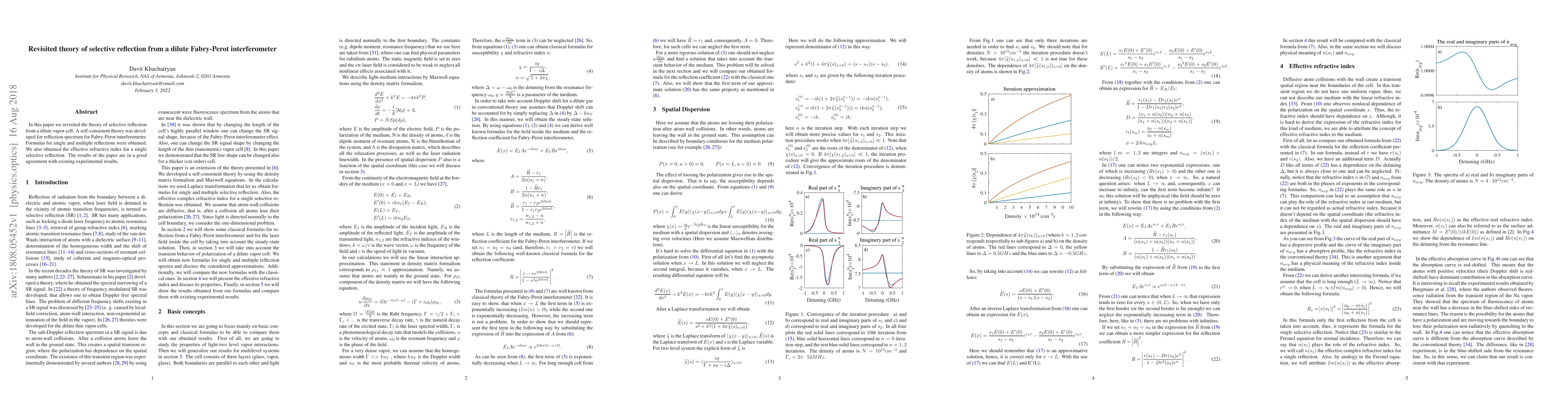 In this paper we revisited the theory of selective reflection from a dilute vapor cell. A self-consistent theory was developed for reflection spectrum for Fabry-Perot interferometer. Formulas for single and multiple reflections were obtained. We also obtained the effective refractive index for a single selective reflection. The results of the paper are in a good agreement with existing experimental results.