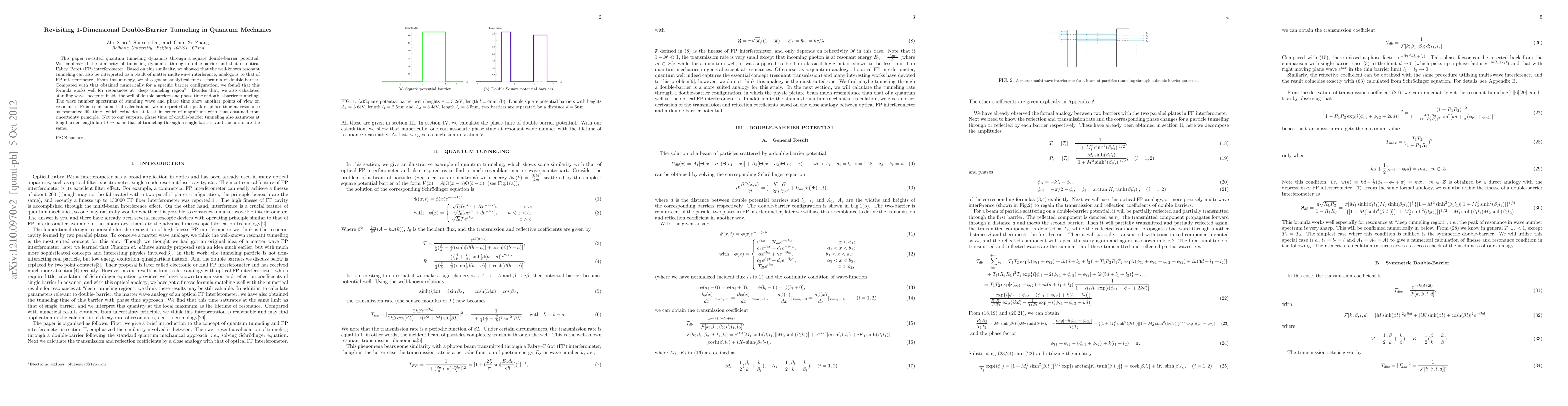 This paper explores quantum tunneling through a double-barrier potential, drawing parallels to optical Fabry-Pérot interferometers, and derives an analytical finesse formula that matches numerical results for deep tunneling. It also investigates standing wave spectra and phase time, revealing insights into resonance lifetime and saturation behavior.