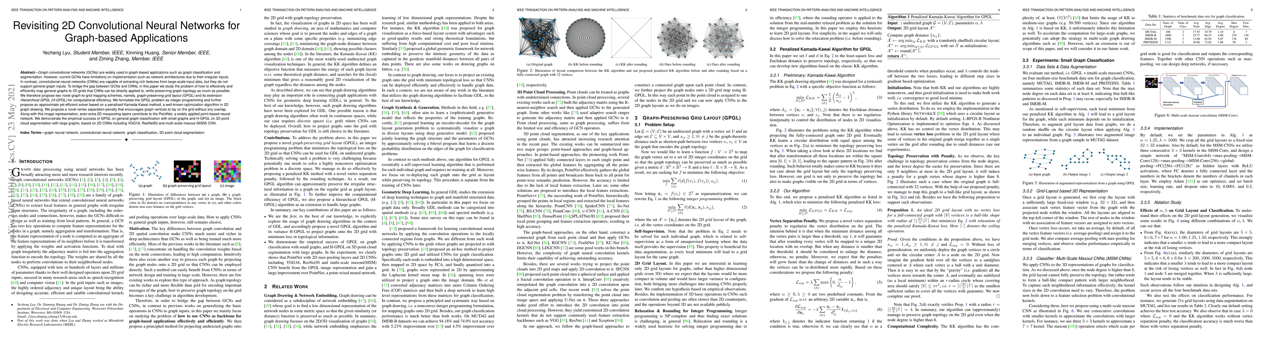 This paper proposes two novel graph-to-grid mapping schemes, GPGL and H-GPGL, to efficiently apply 2D CNNs to graph-based applications while preserving graph topology. The methods are demonstrated to be effective for graph classification and 3D point cloud segmentation using 2D CNNs.