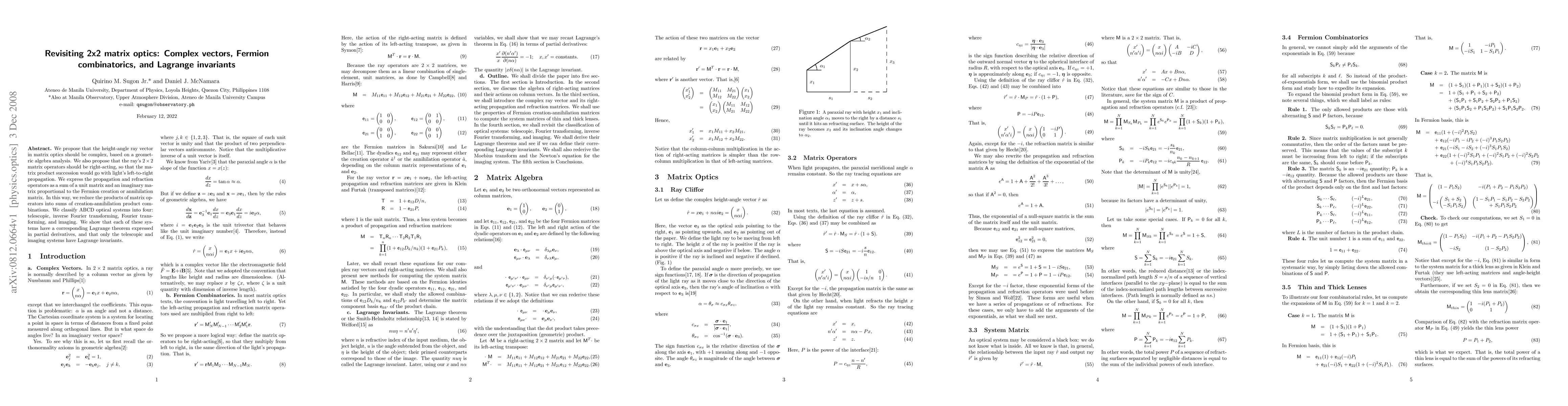 Researchers propose that matrix optics should involve complex vectors and right-acting 2x2 matrix operators for accurate light propagation, reducing products to creation-annihilation combinations.