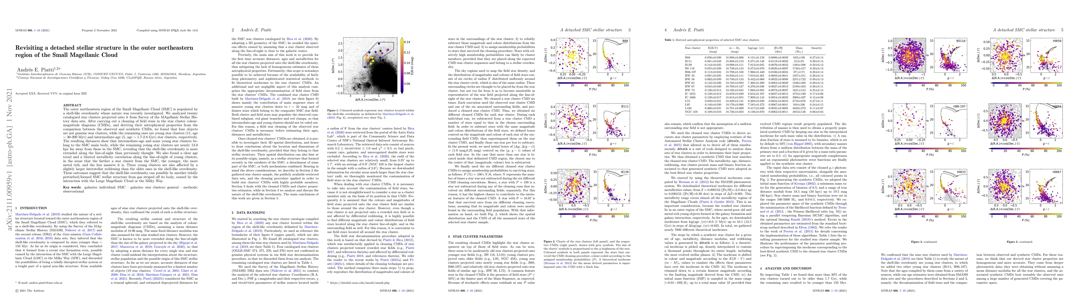 This study investigates the nature of a shell-like overdensity in the outer northeastern region of the Small Magellanic Cloud (SMC), identifying 16 star clusters, of which 11 are young and 5 are intermediate-age. The analysis reveals that the shell-like structure is more extended along the line-of-sight than previously thought, suggesting it may be a tidally perturbed SMC stellar structure formed by interactions with the Large Magellanic Cloud or the Milky Way.