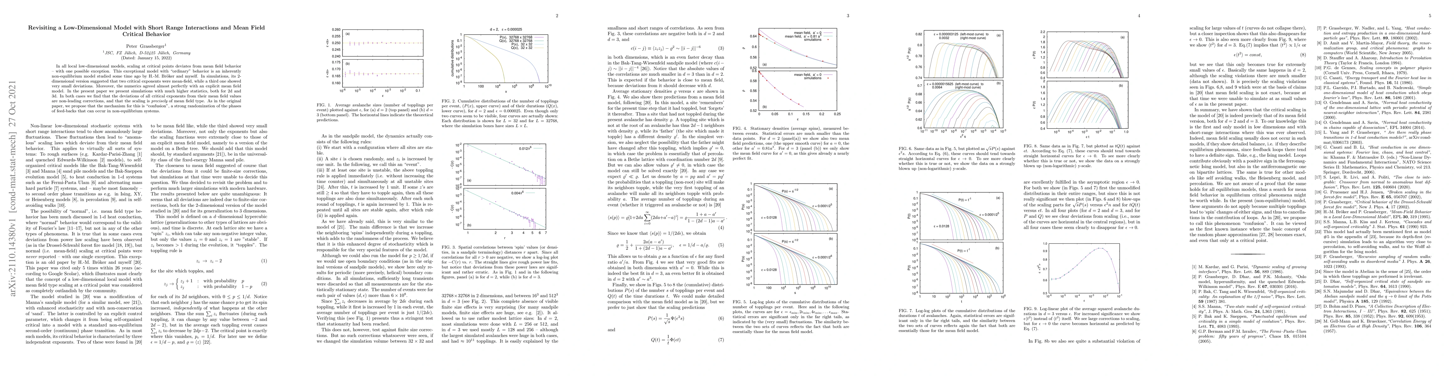 In all local low-dimensional models, scaling at critical points deviates from mean field behavior -- with one possible exception. This exceptional model with ``ordinary" behavior is an inherently non-equilibrium model studied some time ago by H.-M. Broker and myself. In simulations, its 2-dimensional version suggested that two critical exponents were mean-field, while a third one showed very small deviations. Moreover, the numerics agreed almost perfectly with an explicit mean field model. In the present paper we present simulations with much higher statistics, both for 2d and 3d. In both cases we find that the deviations of all critical exponents from their mean field values are non-leading corrections, and that the scaling is {\it precisely} of mean field type. As in the original paper, we propose that the mechanism for this is ``confusion", a strong randomization of the phases of feed-backs that can occur in non-equilibrium systems.