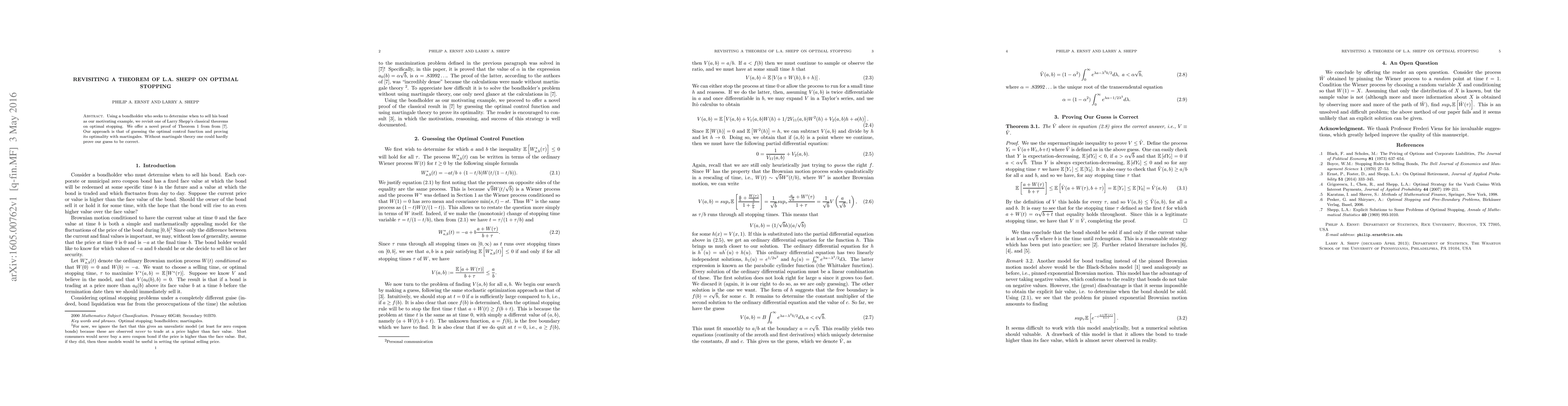 Researchers revisit a classic theorem on optimal stopping with a new proof that uses martingales to prove the optimality of an optimal control function in bond sales.