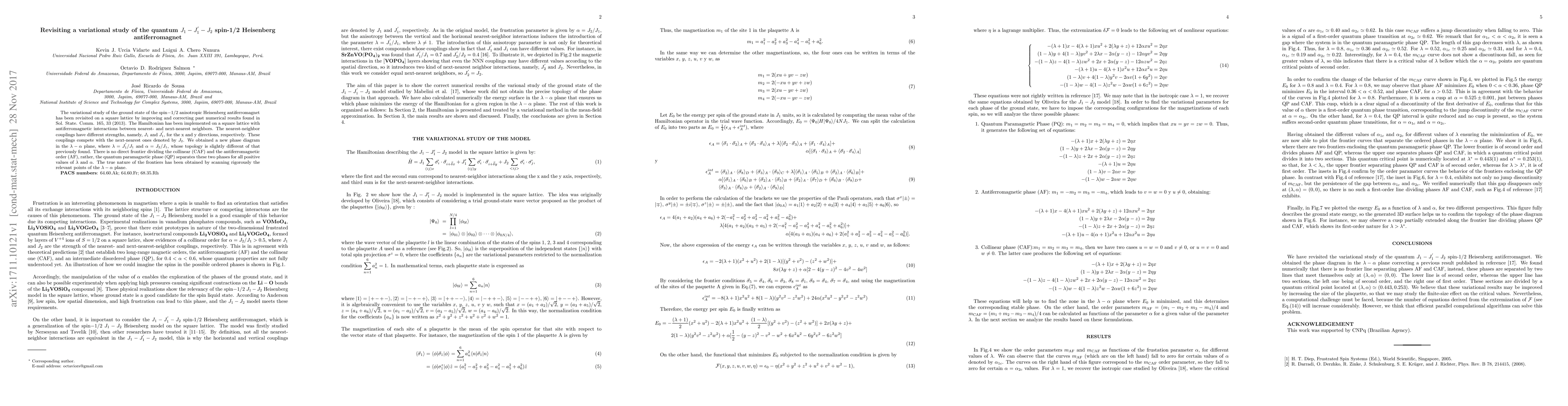 Researchers revisited a study on a spin-1/2 Heisenberg antiferromagnet with competing interactions, finding a new phase diagram in the lambda-alpha plane that separates collinear and antiferromagnetic orders with no direct frontier between them.
