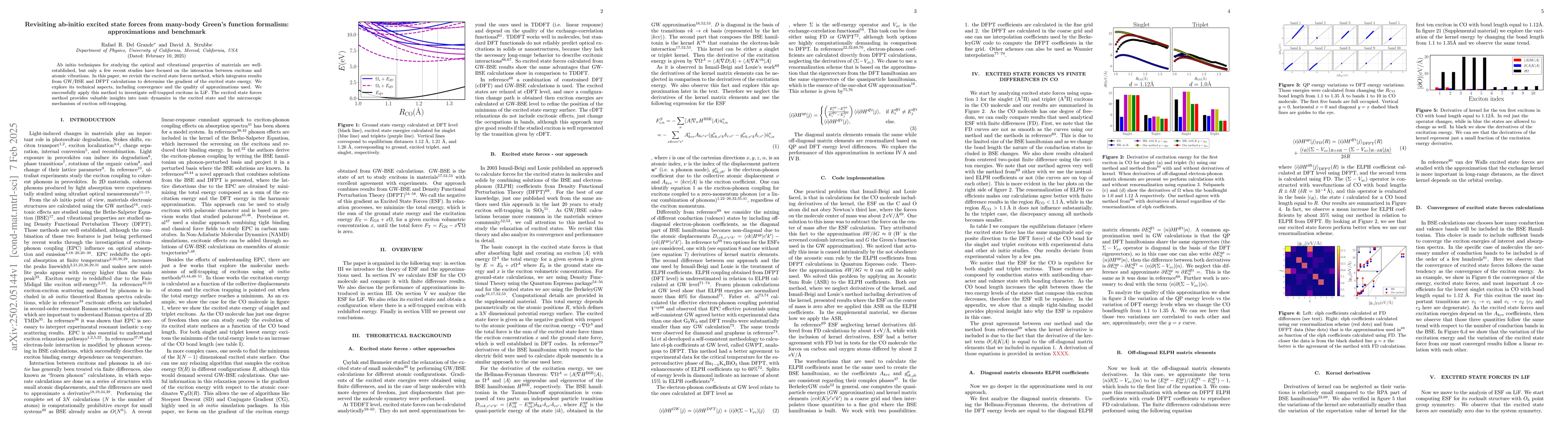 The research offers a comprehensive revisit of the excited state forces method, providing new insights into self-trapped excitons and validating approximations through benchmarking against LiF and CO systems.