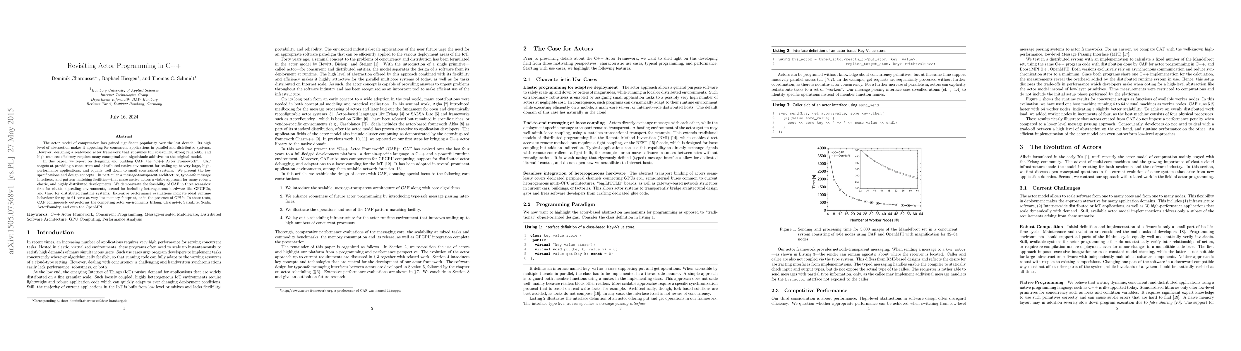 This paper introduces CAF, a C++ Actor Framework designed for scalable, reliable, and resource-efficient concurrent and distributed applications. CAF features a message-transparent architecture, type-safe interfaces, and pattern matching, demonstrating superior performance over other actor frameworks in various environments.