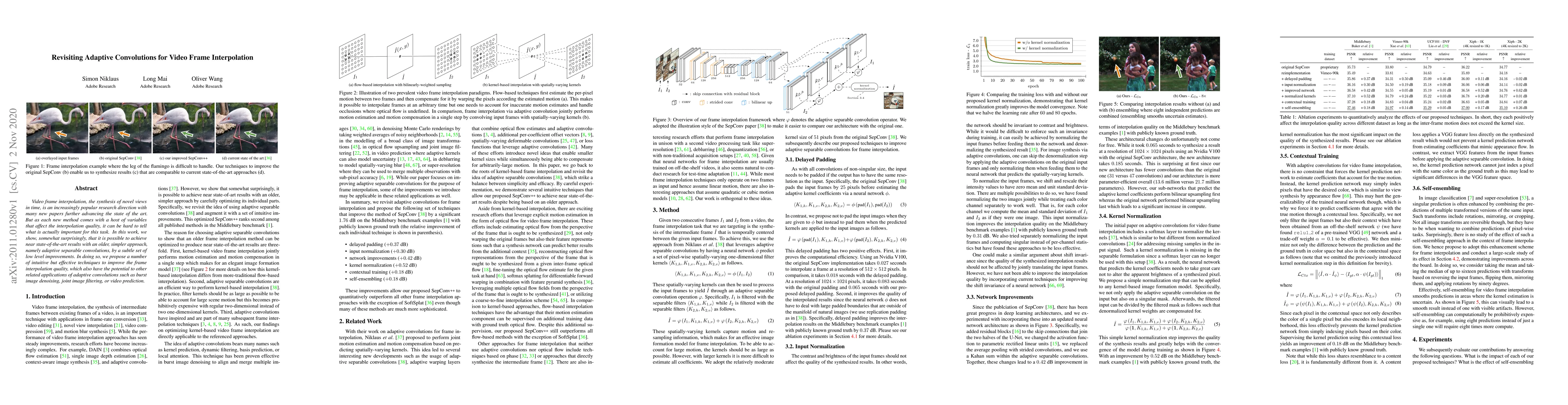 This paper demonstrates that adaptive separable convolutions, with minor enhancements, can achieve near state-of-the-art results in video frame interpolation. The proposed techniques also hold promise for other adaptive convolution applications like burst image denoising.