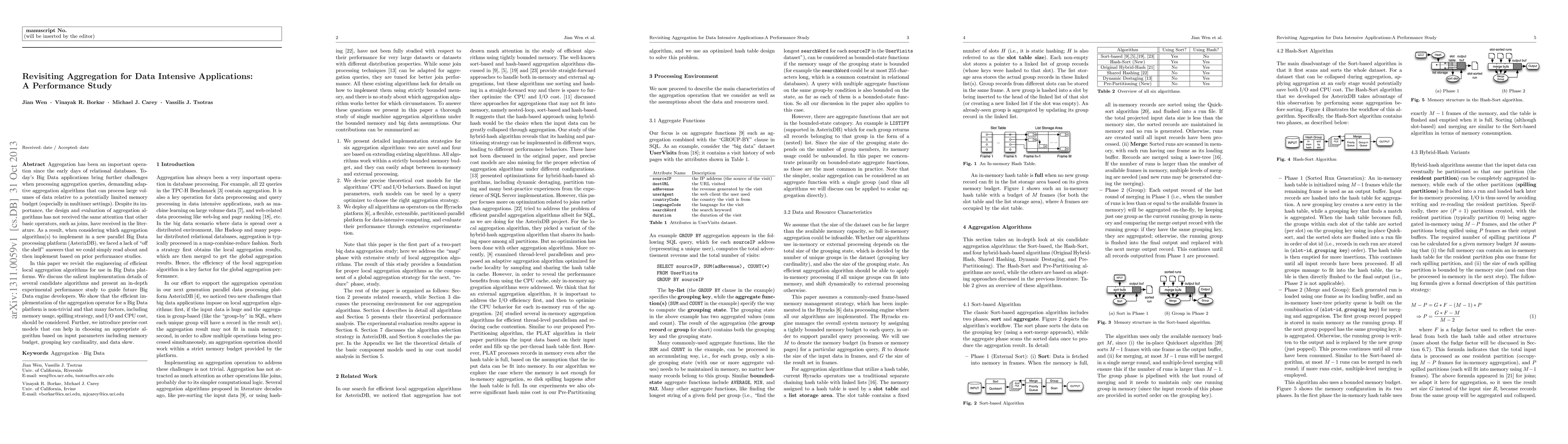 Aggregation has been an important operation since the early days of relational databases. Today's Big Data applications bring further challenges when processing aggregation queries, demanding adaptive aggregation algorithms that can process large volumes of data relative to a potentially limited memory budget (especially in multiuser settings). Despite its importance, the design and evaluation of aggregation algorithms has not received the same attention that other basic operators, such as joins, have received in the literature. As a result, when considering which aggregation algorithm(s) to implement in a new parallel Big Data processing platform (AsterixDB), we faced a lack of "off the shelf" answers that we could simply read about and then implement based on prior performance studies. In this paper we revisit the engineering of efficient local aggregation algorithms for use in Big Data platforms. We discuss the salient implementation details of several candidate algorithms and present an in-depth experimental performance study to guide future Big Data engine developers. We show that the efficient implementation of the aggregation operator for a Big Data platform is non-trivial and that many factors, including memory usage, spilling strategy, and I/O and CPU cost, should be considered. Further, we introduce precise cost models that can help in choosing an appropriate algorithm based on input parameters including memory budget, grouping key cardinality, and data skew.