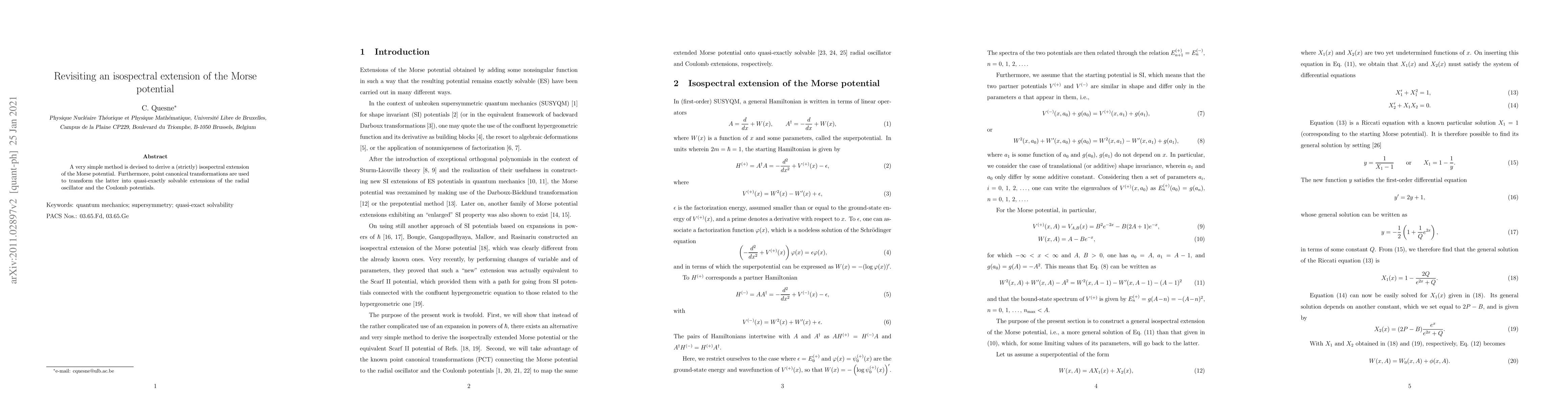 A new method creates an isospectral extension of the Morse potential, which can also transform into quasi-exactly solvable extensions of other potentials, offering a simplified approach to solving complex problems in quantum mechanics.