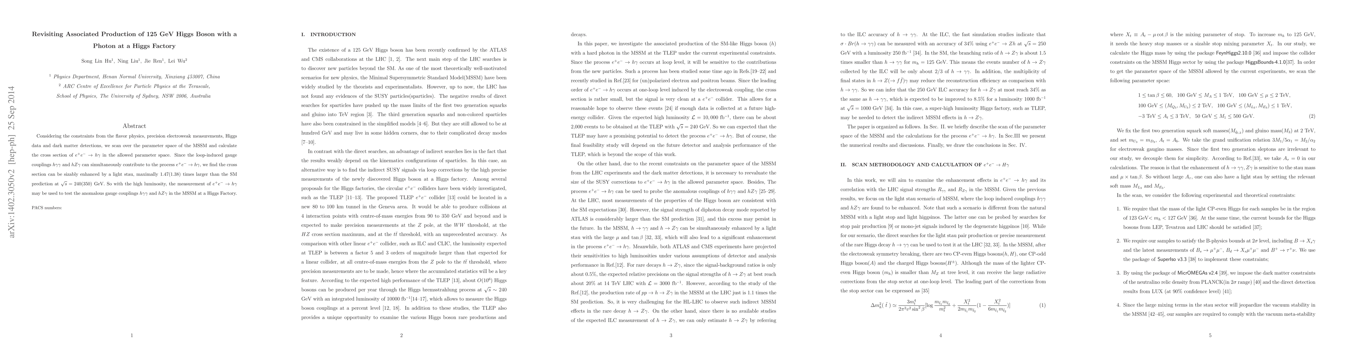 The study explores the production of a 125 GeV Higgs boson with a photon at a Higgs Factory, revealing that a light stau can enhance this process, potentially allowing for the detection of anomalous gauge couplings in the Minimal Supersymmetric Model (MSSM).