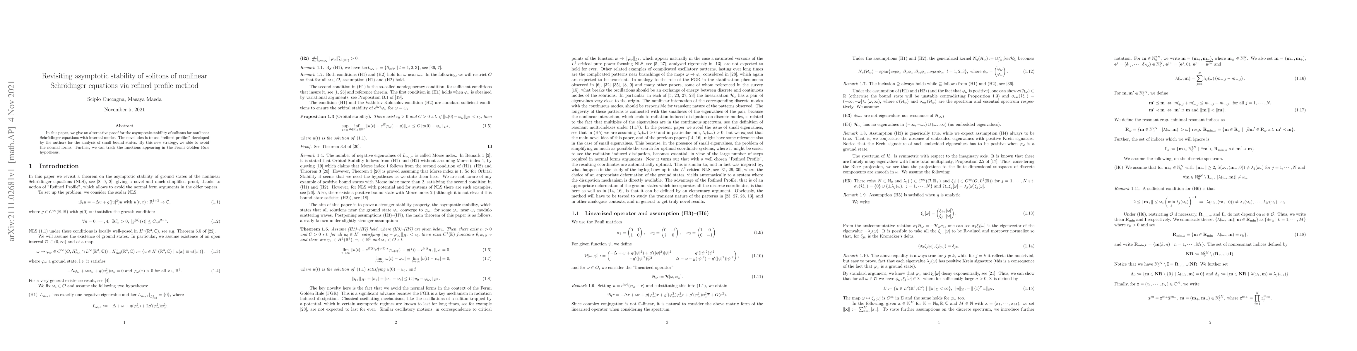 Researchers provide an alternative proof for the asymptotic stability of solitons in nonlinear Schr"odinger equations using a new strategy called refined profiles, allowing them to track functions appearing in the Fermi Golden Rule hypothesis.