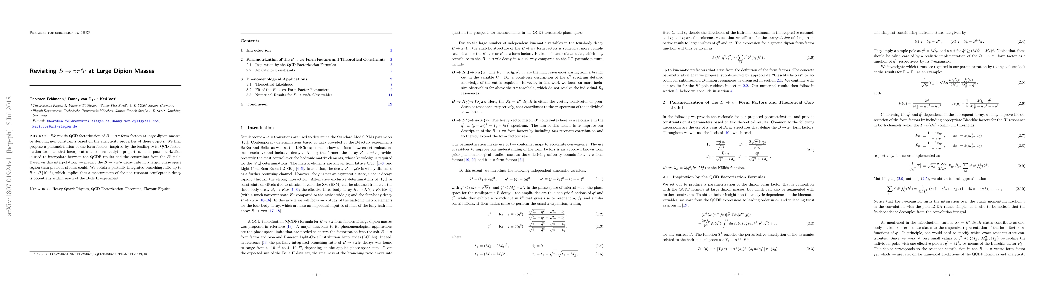 We revisit QCD factorization of $B\to \pi\pi$ form factors at large dipion masses, by deriving new constraints based on the analyticity properties of these objects. We then propose a parametrization of the form factors, inspired by the leading-twist QCD factorization formula, that incorporates all known analytic properties. This parameterization is used to interpolate between the QCDF results and the constraints from the $B^*$ pole. Based on this interpolation, we predict the $B\to \pi\pi\ell\nu$ decay rate in a larger phase space region than previous studies could. We obtain a partially-integrated branching ratio up to $\mathcal{B} \simeq \mathcal{O}({10^{-6}})$, which implies that a measurement of the non-resonant semileptonic decay is potentially within reach of the Belle II experiment.