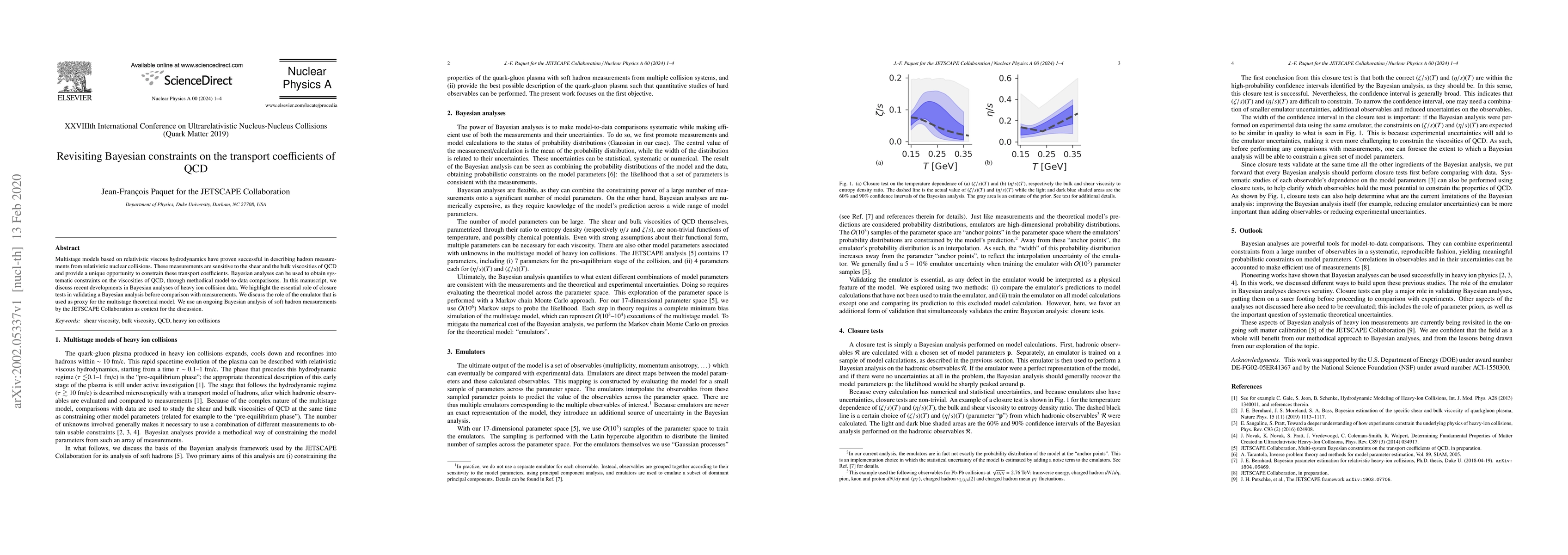 Multistage models based on relativistic viscous hydrodynamics have proven successful in describing hadron measurements from relativistic nuclear collisions. These measurements are sensitive to the shear and the bulk viscosities of QCD and provide a unique opportunity to constrain these transport coefficients. Bayesian analyses can be used to obtain systematic constraints on the viscosities of QCD, through methodical model-to-data comparisons. In this manuscript, we discuss recent developments in Bayesian analyses of heavy ion collision data. We highlight the essential role of closure tests in validating a Bayesian analysis before comparison with measurements. We discuss the role of the emulator that is used as proxy for the multistage theoretical model. We use an ongoing Bayesian analysis of soft hadron measurements by the JETSCAPE Collaboration as context for the discussion.