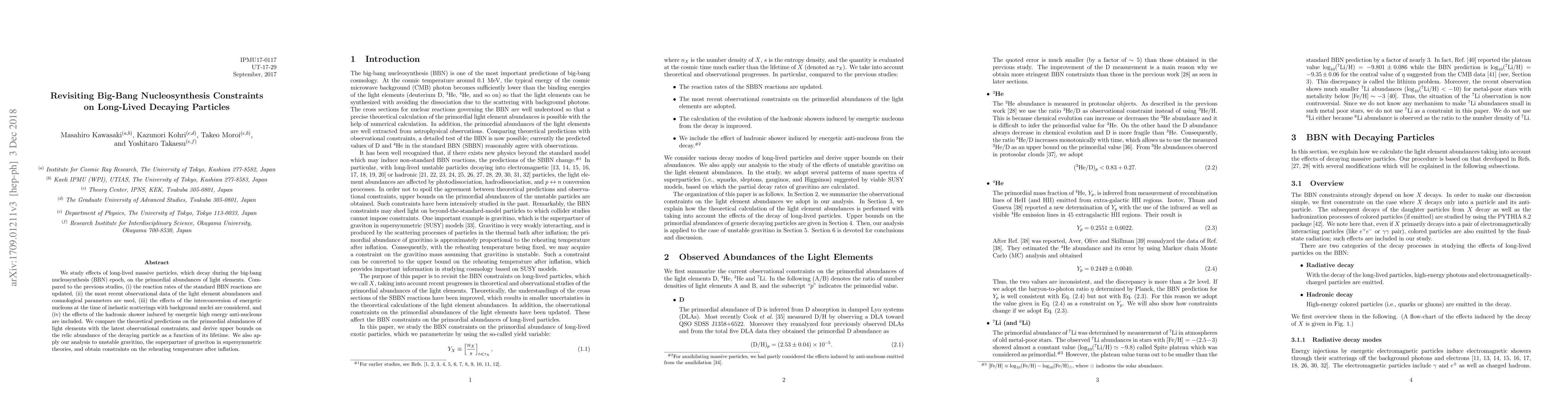 This paper updates the constraints on long-lived decaying particles during big-bang nucleosynthesis, incorporating new reaction rates, observational data, nucleon interconversion effects, and hadronic showers. It derives upper bounds on the relic abundance of such particles and applies the analysis to gravitinos, setting limits on the reheating temperature post-inflation.