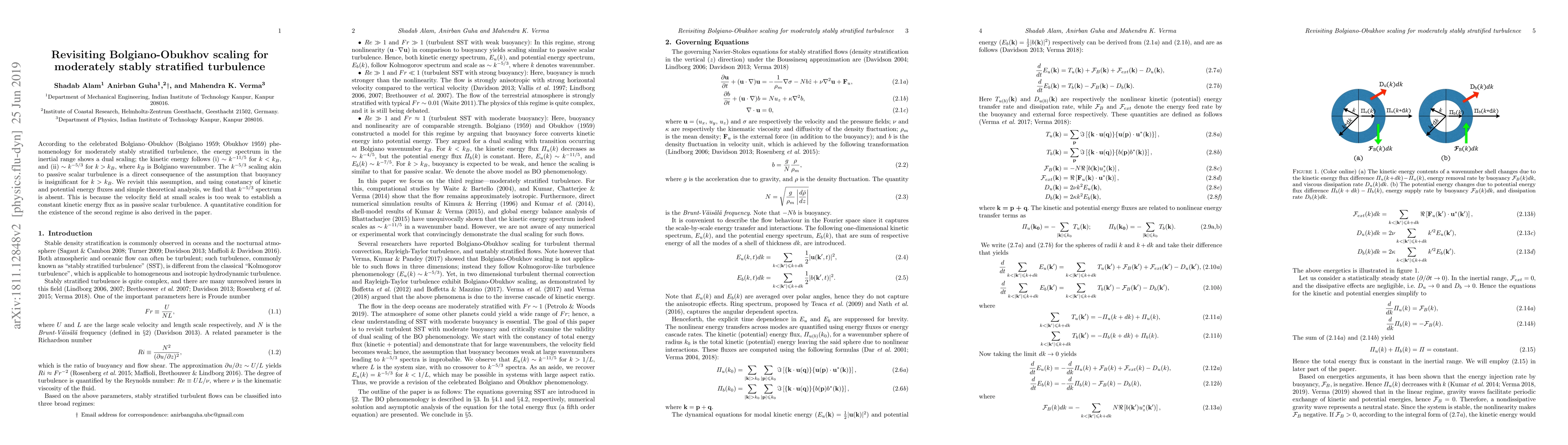 This paper revisits Bolgiano-Obukhov scaling for moderately stably stratified turbulence, finding that the previously assumed $k^{-5/3}$ energy spectrum for large wavenumbers does not exist due to insufficient small-scale velocity fields. A new quantitative condition for the second scaling regime is derived.
