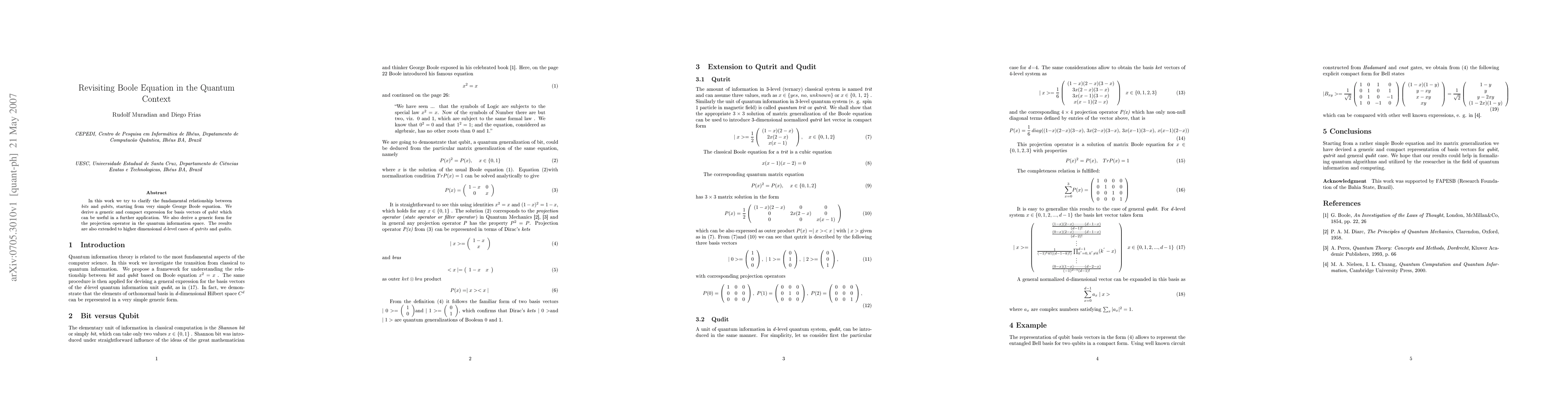 In this work we try to clarify the fundamental relationship between bits and qubits, starting from very simple George Boole equation. We derive a generic and compact expression for basis vectors of qubit which can be useful in further applications. We also derive a generic form for the projection operator in the quantum information space. The results are also extended to higher d-level cases of qutrits and qudits.