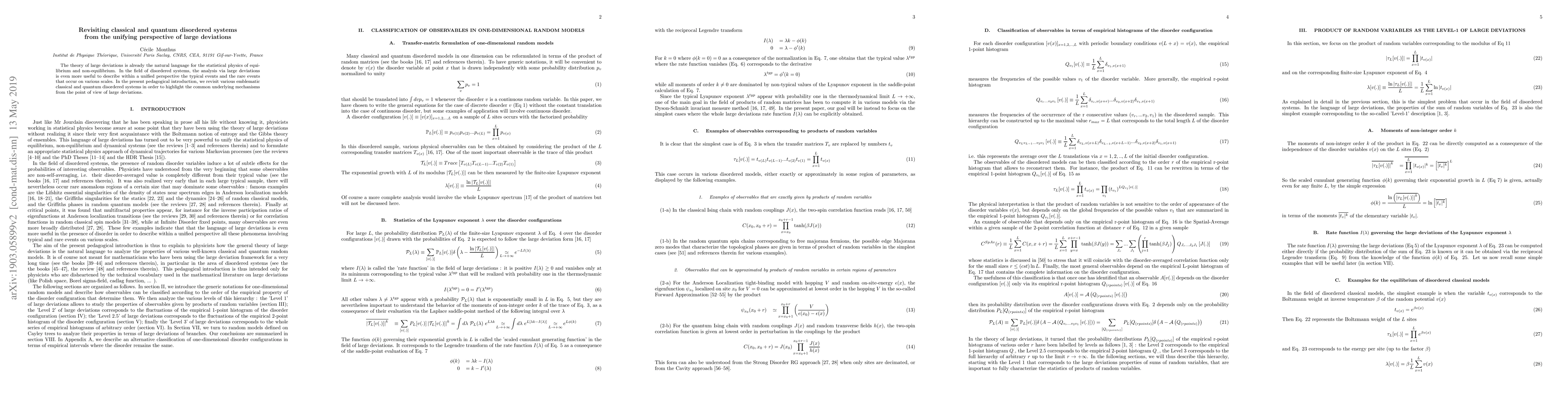 This paper explores the unifying perspective of large deviations in statistical physics to analyze both classical and quantum disordered systems, highlighting common mechanisms through emblematic examples. The study aims to provide a pedagogical introduction to the theory of large deviations in the context of rare and typical events in disordered systems.