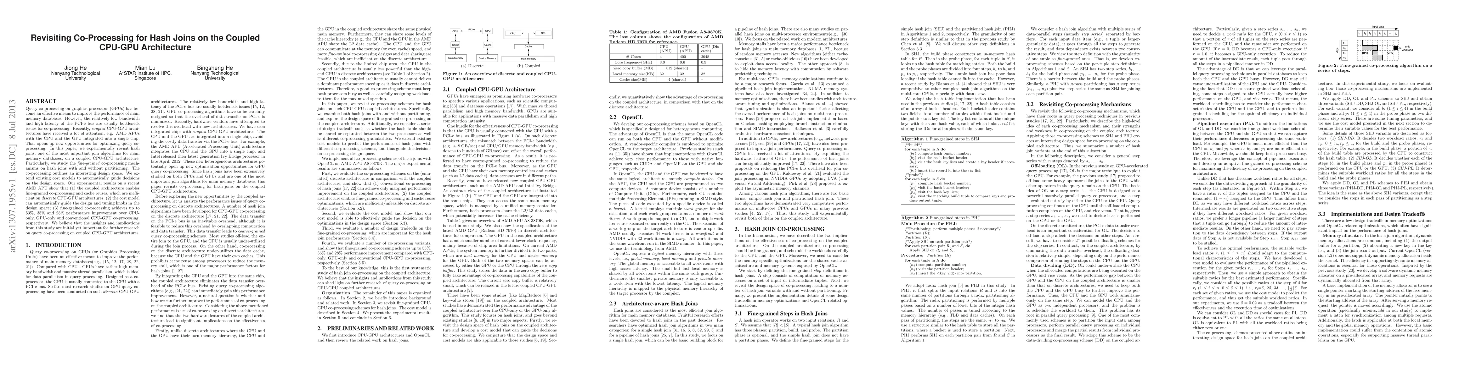 This paper explores fine-grained co-processing for hash joins on coupled CPU-GPU architectures, demonstrating significant performance improvements. It shows that the integrated architecture enables efficient co-processing and cache reuse, leading to up to 53% performance gains over traditional methods.