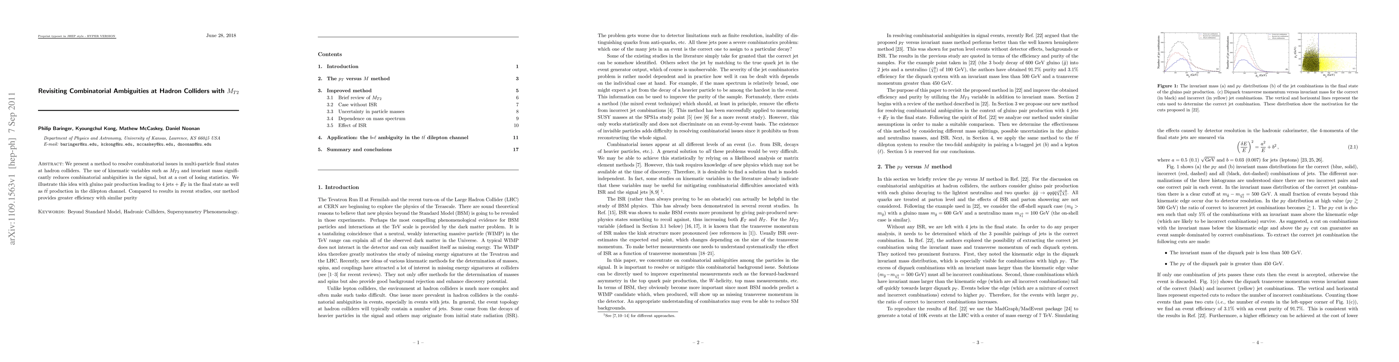 We present a method to resolve combinatorial issues in multi-particle final states at hadron colliders. The use of kinematic variables such as MT2 and invariant mass significantly reduces combinatorial ambiguities in the signal, but at a cost of losing statistics. We illustrate this idea with gluino pair production leading to 4 jets $+\met$ in the final state as well as $t\bar{t}$ production in the dilepton channel. Compared to results in recent studies, our method provides greater efficiency with similar purity