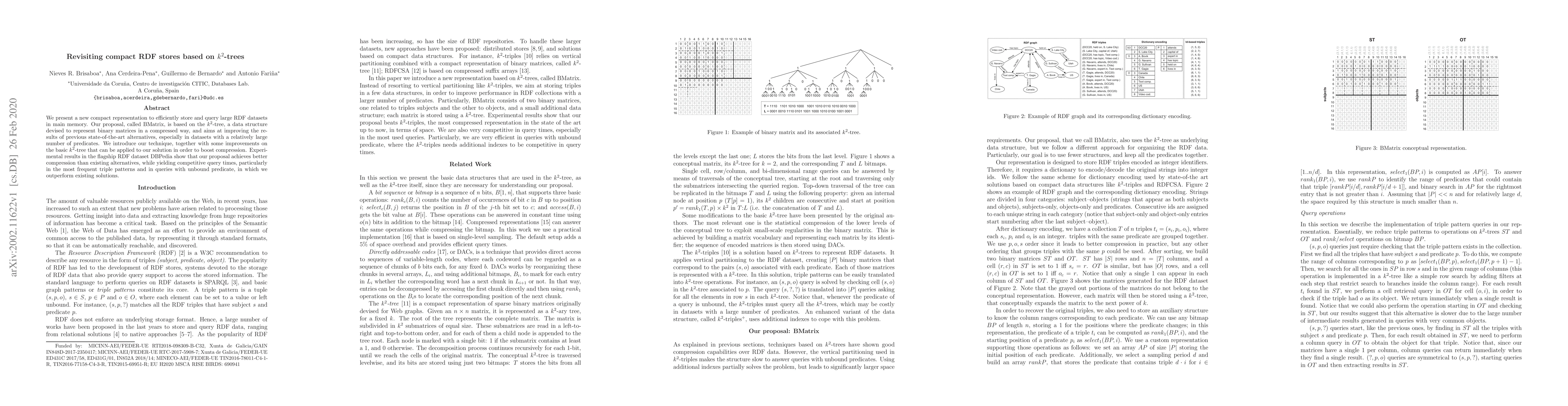 This paper proposes BMatrix, a new compact representation based on k2-trees to efficiently store and query large RDF datasets in main memory. Experimental results show BMatrix achieves better compression and competitive query times compared to existing alternatives, especially for datasets with many predicates.