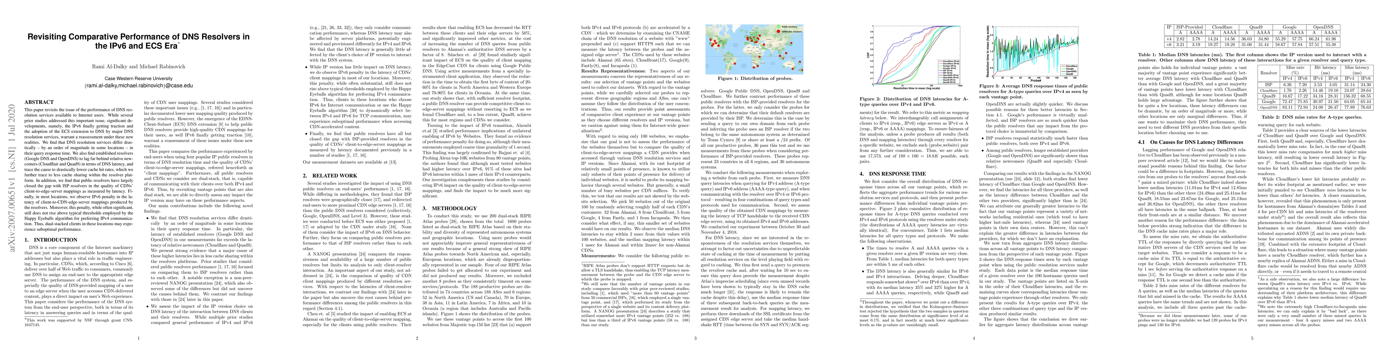 This study reassesses DNS resolver performance in the IPv6 and ECS era, finding significant differences in query response times among services, with established resolvers lagging behind newer ones due to lower cache hit rates. It also notes that public resolvers have nearly matched ISP resolvers in CDN performance, while IPv6 still incurs latency penalties that may lead to suboptimal dual-stack client performance.