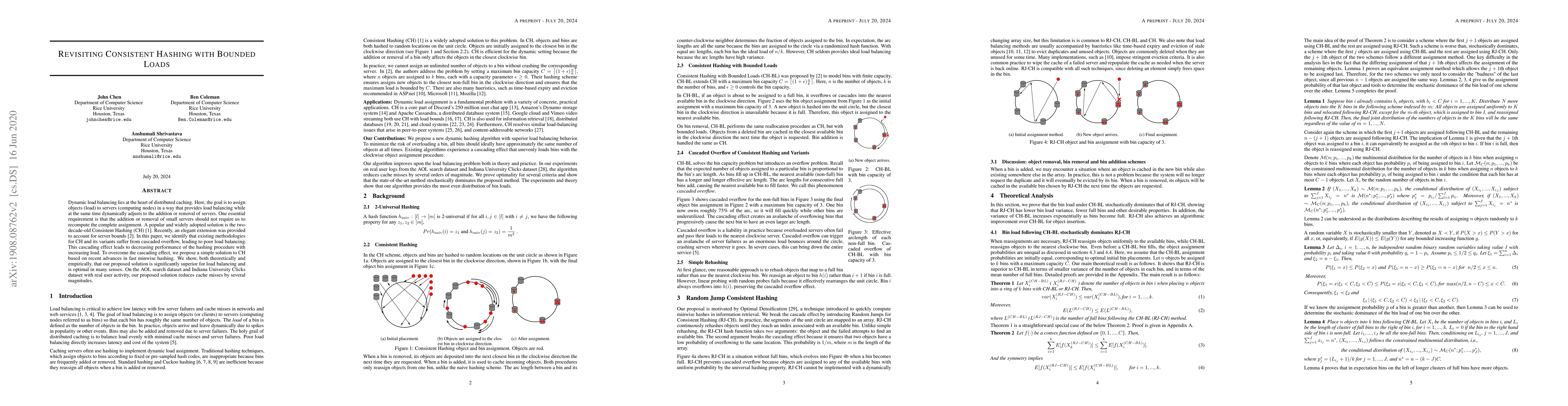 Dynamic load balancing lies at the heart of distributed caching. Here, the goal is to assign objects (load) to servers (computing nodes) in a way that provides load balancing while at the same time dynamically adjusts to the addition or removal of servers. One essential requirement is that the addition or removal of small servers should not require us to recompute the complete assignment. A popular and widely adopted solution is the two-decade-old Consistent Hashing (CH). Recently, an elegant extension was provided to account for server bounds. In this paper, we identify that existing methodologies for CH and its variants suffer from cascaded overflow, leading to poor load balancing. This cascading effect leads to decreasing performance of the hashing procedure with increasing load. To overcome the cascading effect, we propose a simple solution to CH based on recent advances in fast minwise hashing. We show, both theoretically and empirically, that our proposed solution is significantly superior for load balancing and is optimal in many senses. On the AOL search dataset and Indiana University Clicks dataset with real user activity, our proposed solution reduces cache misses by several magnitudes.