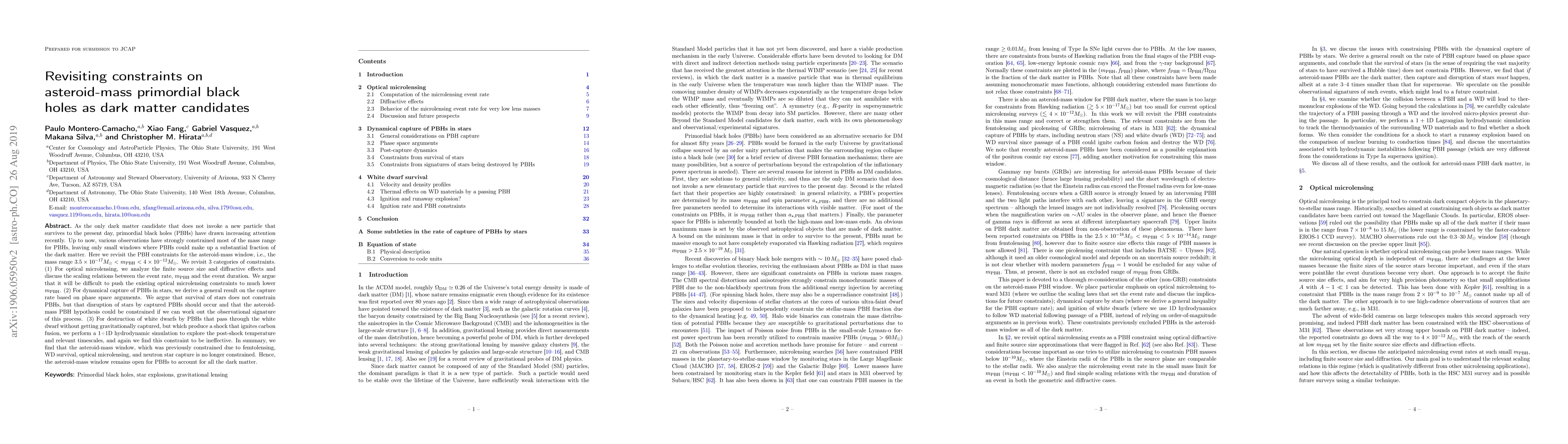 As the only dark matter candidate that does not invoke a new particle that survives to the present day, primordial black holes (PBHs) have drawn increasing attention recently. Up to now, various observations have strongly constrained most of the mass range for PBHs, leaving only small windows where PBHs could make up a substantial fraction of the dark matter. Here we revisit the PBH constraints for the asteroid-mass window, i.e., the mass range $3.5\times 10^{-17}M_\odot < m_{\mathrm{PBH}} < 4\times 10^{-12}M_\odot$. We revisit 3 categories of constraints. (1) For optical microlensing, we analyze the finite source size and diffractive effects and discuss the scaling relations between the event rate, $m_{\mathrm{PBH}}$ and the event duration. We argue that it will be difficult to push the existing optical microlensing constraints to much lower m$_{\mathrm{PBH}}$. (2) For dynamical capture of PBHs in stars, we derive a general result on the capture rate based on phase space arguments. We argue that survival of stars does not constrain PBHs, but that disruption of stars by captured PBHs should occur and that the asteroid-mass PBH hypothesis could be constrained if we can work out the observational signature of this process. (3) For destruction of white dwarfs by PBHs that pass through the white dwarf without getting gravitationally captured, but which produce a shock that ignites carbon fusion, we perform a 1+1D hydrodynamic simulation to explore the post-shock temperature and relevant timescales, and again we find this constraint to be ineffective. In summary, we find that the asteroid-mass window remains open for PBHs to account for all the dark matter.