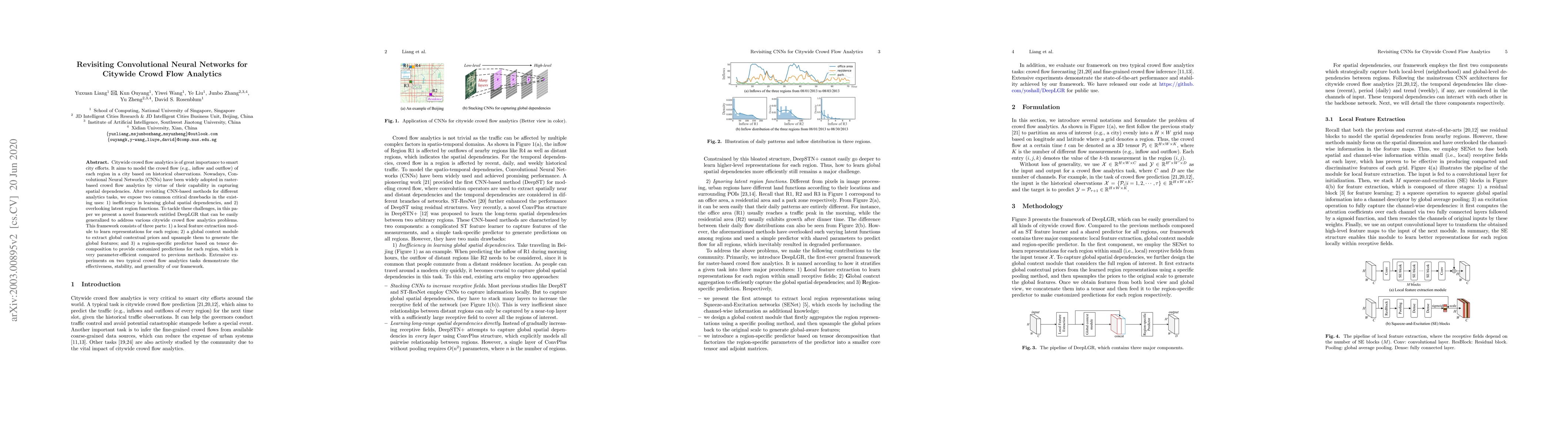 This paper revisits CNN-based methods for citywide crowd flow analytics, identifying inefficiencies in learning global spatial dependencies and overlooking region functions. It introduces DeepLGR, a novel framework with local feature extraction, global context extraction, and region-specific predictors, demonstrating improved effectiveness and parameter efficiency.