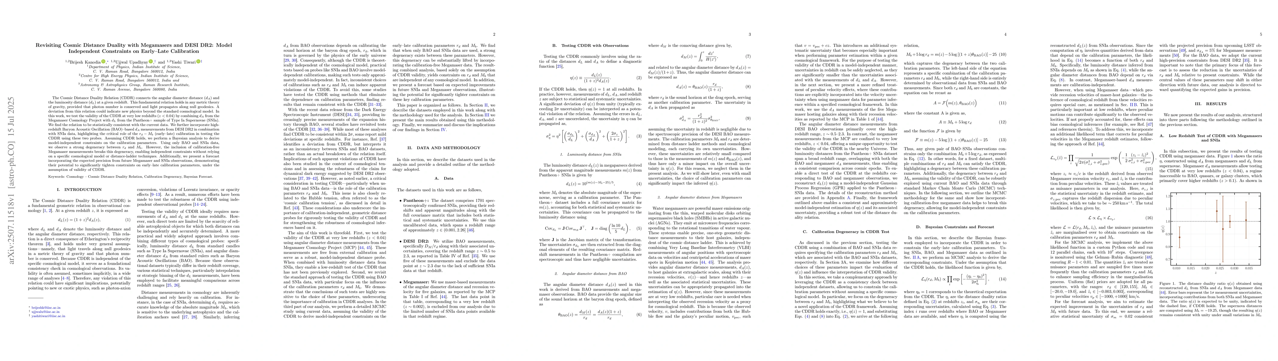 The Cosmic Distance Duality Relation (CDDR) connects the angular diameter distance ($d_A$) and the luminosity distance ($d_L$) at a given redshift. This fundamental relation holds in any metric theory of gravity, provided that photon number is conserved and light propagates along null geodesics. A deviation from this relation could indicate new physics beyond the standard cosmological model. In this work, we test the validity of the CDDR at very low redshifts ($z < 0.04$) by combining $d_A$ from the Megamaser Cosmology Project with $d_L$ from the Pantheon+ sample of Type Ia Supernovae (SNIa). We find the relation to be statistically consistent with the current data. We further incorporate high-redshift Baryon Acoustic Oscillation (BAO)-based $d_A$ measurements from DESI DR2 in combination with SNIa data, highlighting the critical role of the $r_d-M_b$ (early-late) calibration in testing the CDDR using these two probes. Assuming CDDR holds, we perform a Bayesian analysis to derive model-independent constraints on the calibration parameters. Using only BAO and SNIa data, we observe a strong degeneracy between $r_d$ and $M_b$. However, the inclusion of calibration-free Megamaser measurements breaks this degeneracy, enabling independent constraints without relying on a specific cosmological model or distance-ladder techniques. Additionally, we present a forecast incorporating the expected precision from future Megamaser and SNIa observations, demonstrating their potential to significantly tighten constraints on early-late calibration parameters, under the assumption of validity of CDDR.