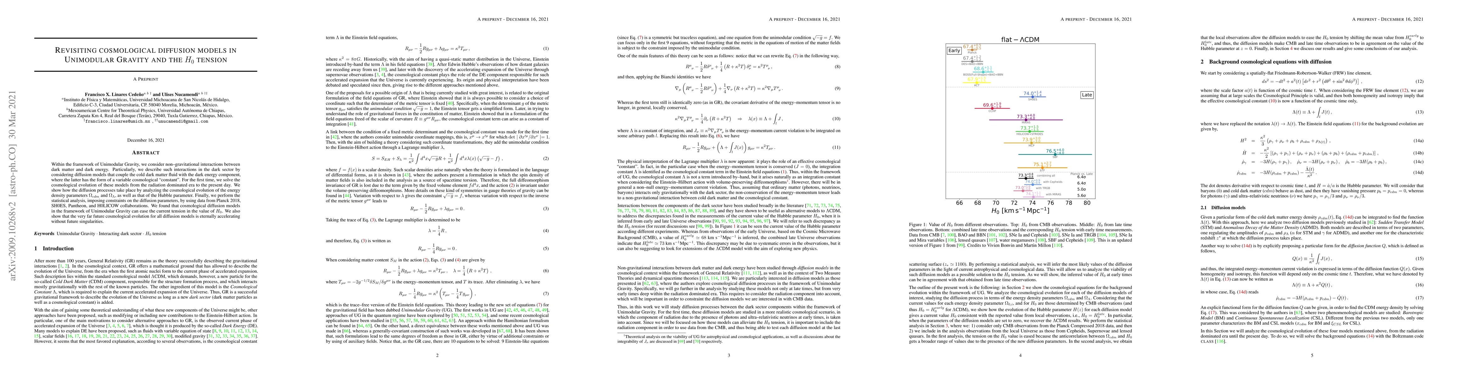 This paper explores the cosmological diffusion models in Unimodular Gravity, proposing non-gravitational interactions between dark matter and dark energy to ease the $H_0$ tension. The study reveals that these models can alleviate the discrepancy in the Hubble constant value and predict eternally accelerating expansion without future singularities.