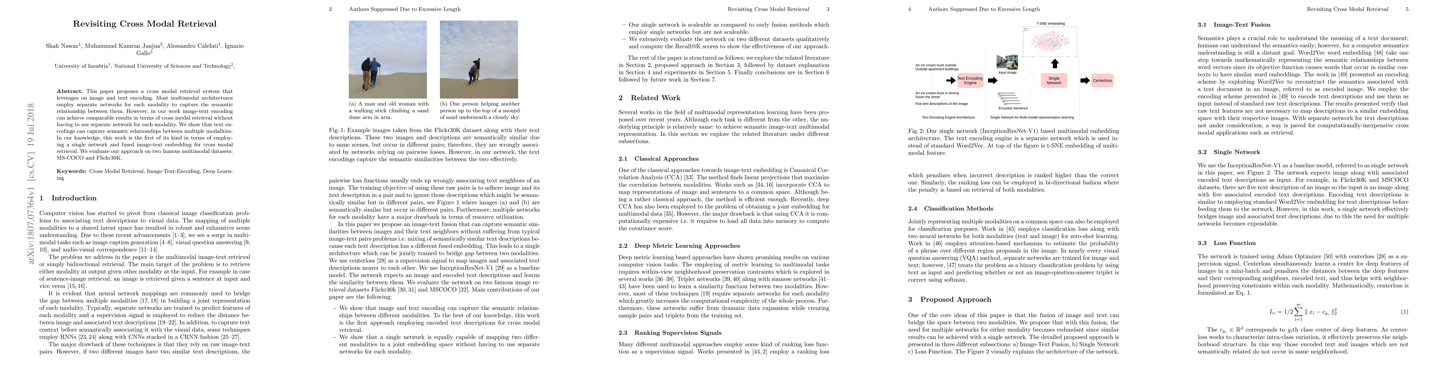This paper introduces a cross-modal retrieval system using a single network to fuse image and text encodings, achieving comparable results without separate networks for each modality. The study evaluates the proposed method on MS-COCO and Flickr30K datasets.