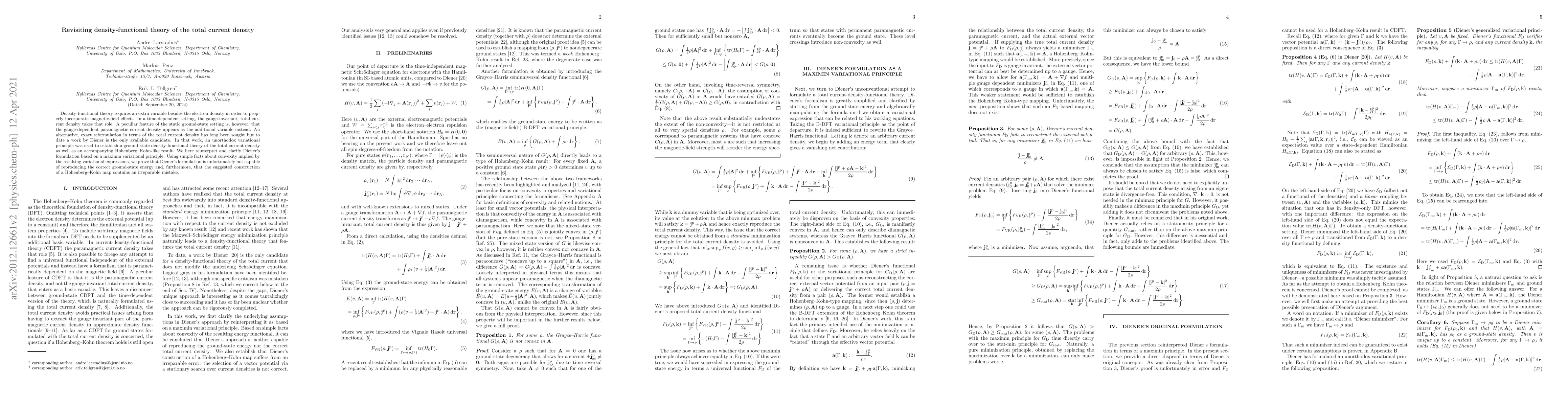 This paper revisits the density-functional theory of the total current density, clarifying a previous reformulation by Diener. It finds that Diener's variational principle fails to reproduce the correct ground-state energy and contains an irreparable error in constructing a Hohenberg-Kohn map.