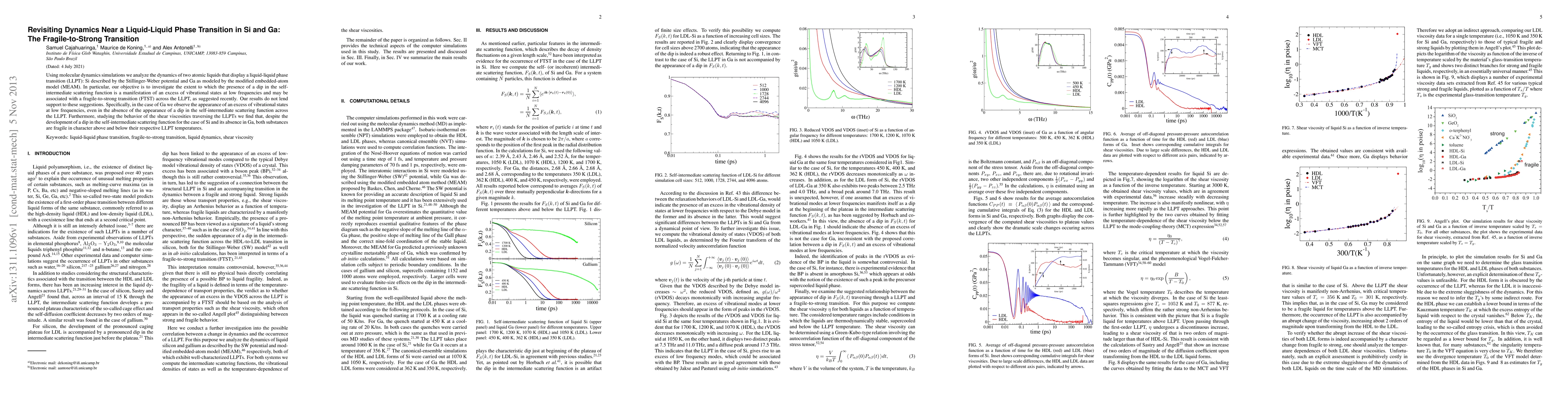 Using molecular dynamics simulations we analyze the dynamics of two atomic liquids that display a liquid-liquid phase transition (LLPT): Si described by the Stillinger-Weber potential and Ga as modeled by the modified embedded-atom model (MEAM). In particular, our objective is to investigate the extent to which the presence of a dip in the self-intermediate scattering function is a manifestation of an excess of vibrational states at low frequencies and may be associated with a fragile-to-strong transition (FTST) across the LLPT, as suggested recently. Our results do not lend support to these suggestions. Specifically, in the case of Ga we observe the appearance of an excess of vibrational states at low frequencies, even in the absence of the appearance of a dip in the self-intermediate scattering function across the LLPT. Furthermore, studying the behavior of the shear viscosities traversing the LLPTs we find that, despite the development of a dip in the self-intermediate scattering function for the case of Si and its absence in Ga, both substances are fragile in character above and below their respective LLPT temperatures.
