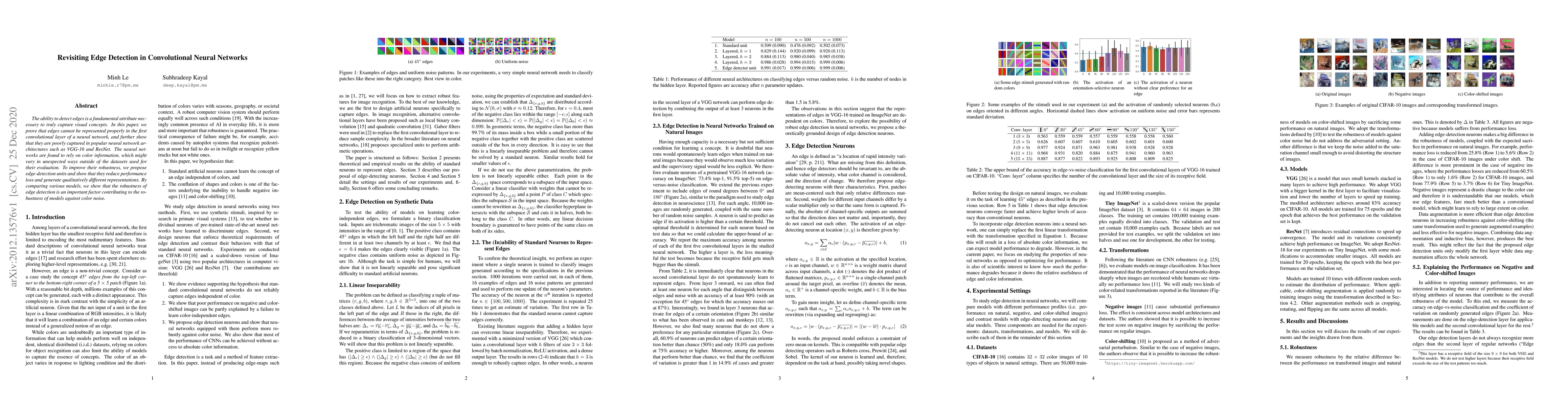 The ability to detect edges is a fundamental attribute necessary to truly capture visual concepts. In this paper, we prove that edges cannot be represented properly in the first convolutional layer of a neural network, and further show that they are poorly captured in popular neural network architectures such as VGG-16 and ResNet. The neural networks are found to rely on color information, which might vary in unexpected ways outside of the datasets used for their evaluation. To improve their robustness, we propose edge-detection units and show that they reduce performance loss and generate qualitatively different representations. By comparing various models, we show that the robustness of edge detection is an important factor contributing to the robustness of models against color noise.