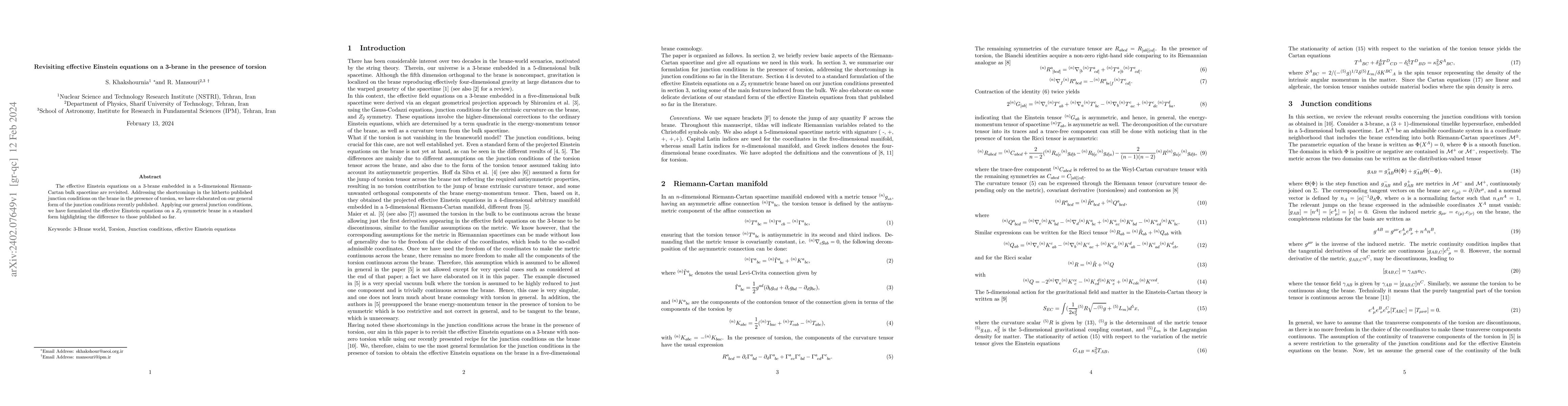 This paper revisits the effective Einstein equations on a 3-brane in a 5D Riemann-Cartan spacetime, correcting previous junction conditions in the presence of torsion. It formulates the effective Einstein equations in a new standard form using improved general junction conditions.