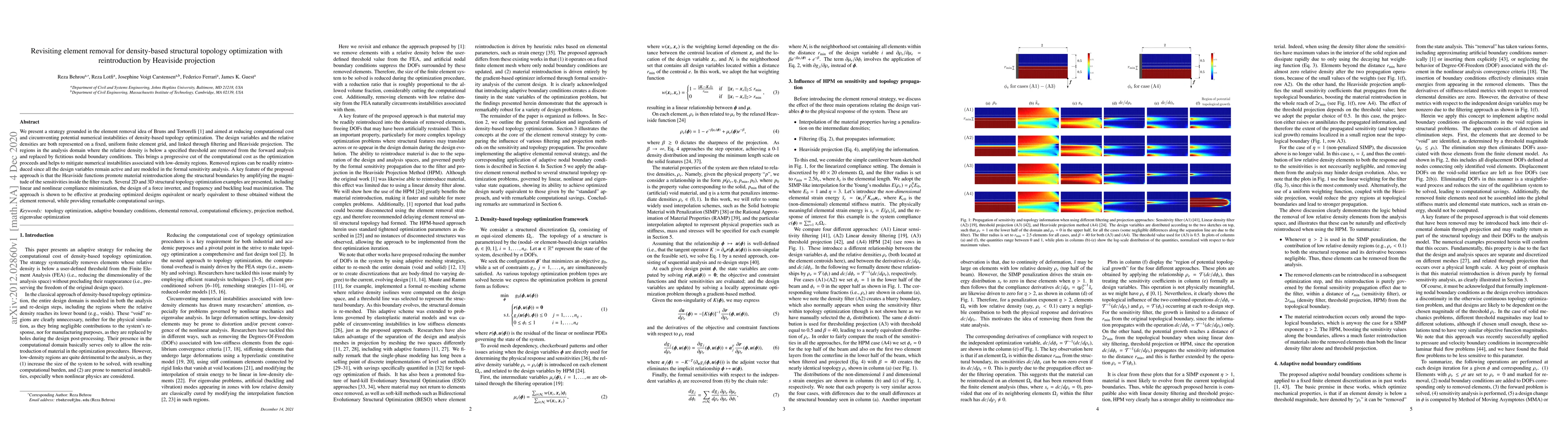 This paper proposes a density-based topology optimization method that reduces computational cost and mitigates numerical instabilities through element removal and reintroduction using Heaviside projection. The approach maintains active design variables and effectively reintroduces removed regions, demonstrating significant computational savings with optimized designs comparable to traditional methods.