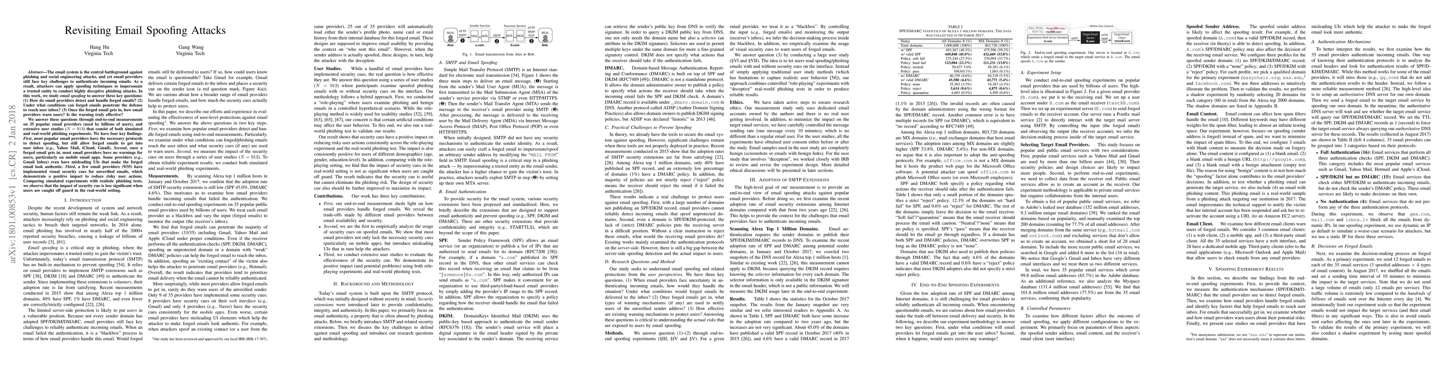 This research investigates email spoofing attacks by examining how popular email providers detect and handle forged emails, the conditions under which these emails bypass defenses, and the effectiveness of user warnings. The study reveals that while most email providers have protocols to detect spoofing, many still allow forged emails to reach users' inboxes, and few provide effective warnings, especially on mobile apps.