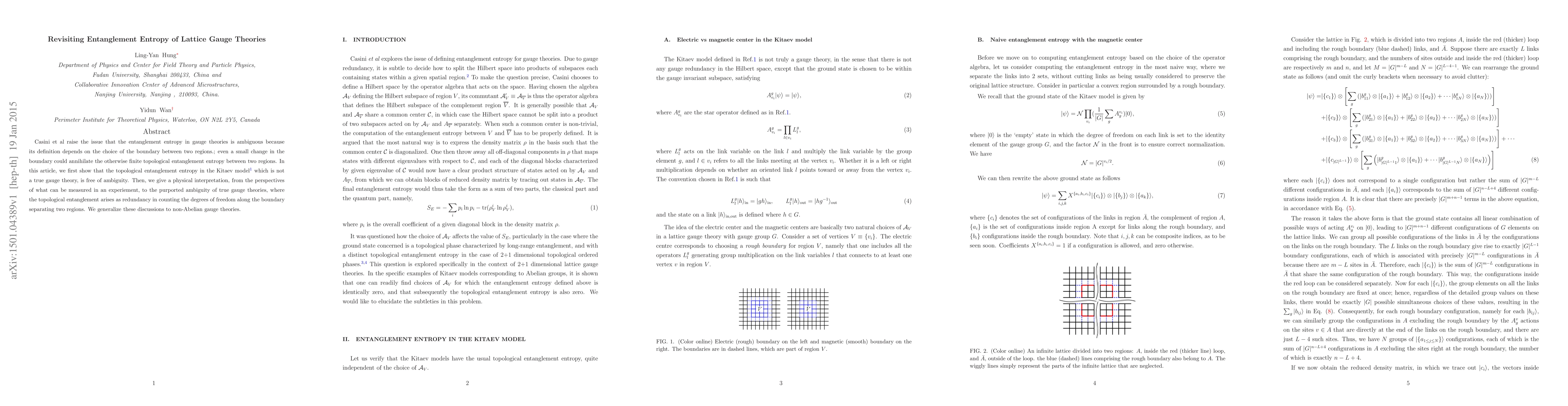 Casini et al raise the issue that the entanglement entropy in gauge theories is ambiguous because its definition depends on the choice of the boundary between two regions.; even a small change in the boundary could annihilate the otherwise finite topological entanglement entropy between two regions. In this article, we first show that the topological entanglement entropy in the Kitaev model which is not a true gauge theory, is free of ambiguity. Then, we give a physical interpretation, from the perspectives of what can be measured in an experiement, to the purported ambiguity of true gauge theories, where the topological entanglement arises as redundancy in counting the degrees of freedom along the boundary separating two regions. We generalize these discussions to non-Abelian gauge theories.