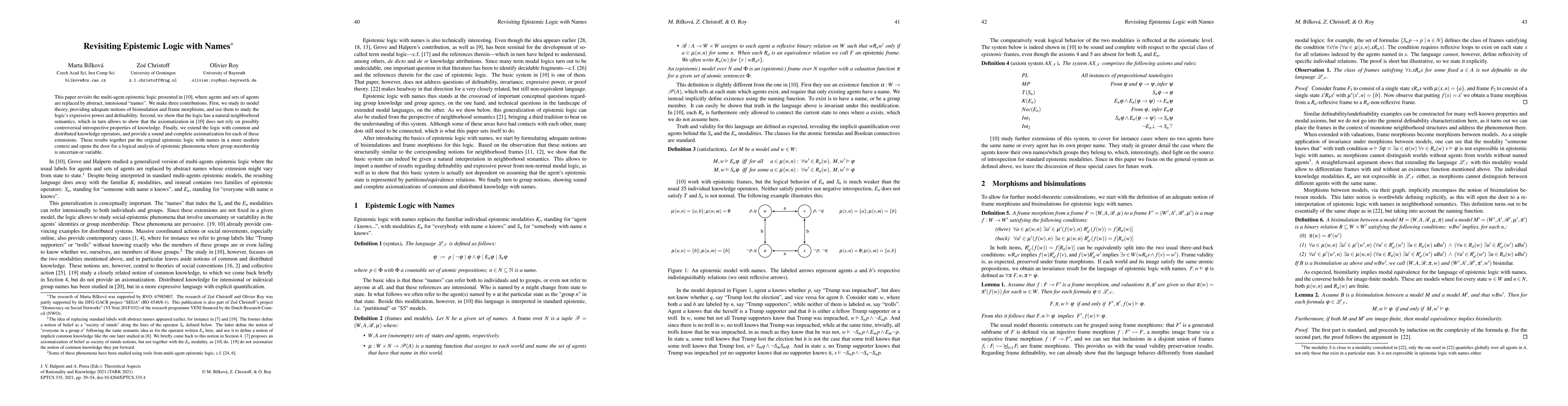 This paper revisits the multi-agent epistemic logic presented in [10], where agents and sets of agents are replaced by abstract, intensional "names". We make three contributions. First, we study its model theory, providing adequate notions of bisimulation and frame morphisms, and use them to study the logic's expressive power and definability. Second, we show that the logic has a natural neighborhood semantics, which in turn allows to show that the axiomatization in [10] does not rely on possibly controversial introspective properties of knowledge. Finally, we extend the logic with common and distributed knowledge operators, and provide a sound and complete axiomatization for each of these extensions. These results together put the original epistemic logic with names in a more modern context and opens the door for a logical analysis of epistemic phenomena where group membership is uncertain or variable.