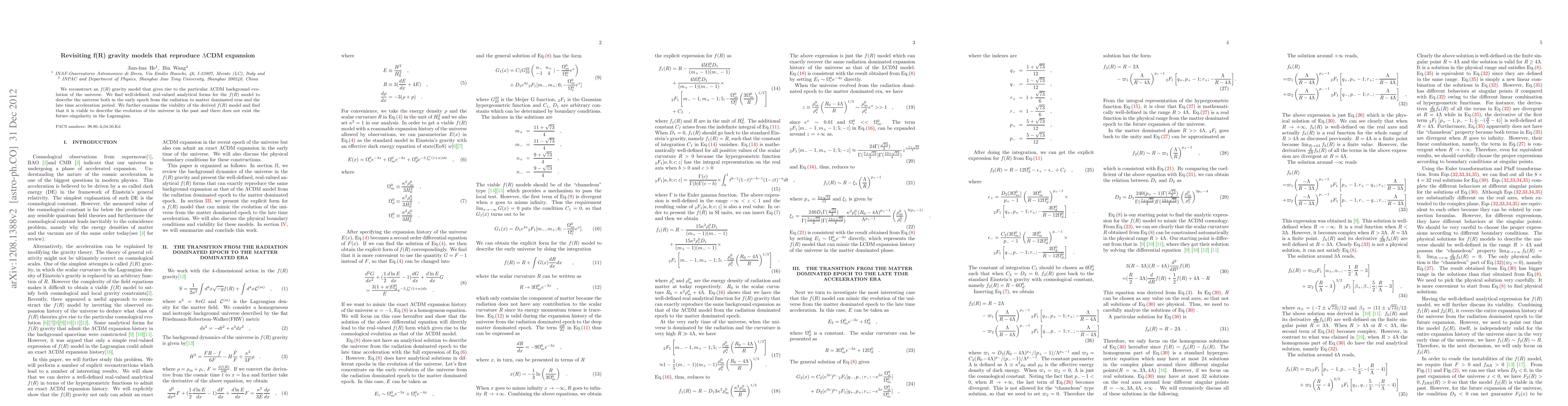 We reconstruct an $f(R)$ gravity model that gives rise to the particular $\Lambda$CDM background evolution of the universe. We find well-defined, real-valued analytical forms for the $f(R)$ model to describe the universe both in the early epoch from the radiation to matter dominated eras and the late time acceleration period. We further examine the viability of the derived $f(R)$ model and find that it is viable to describe the evolution of the universe in the past and there does not exist the future singularity in the Lagrangian.