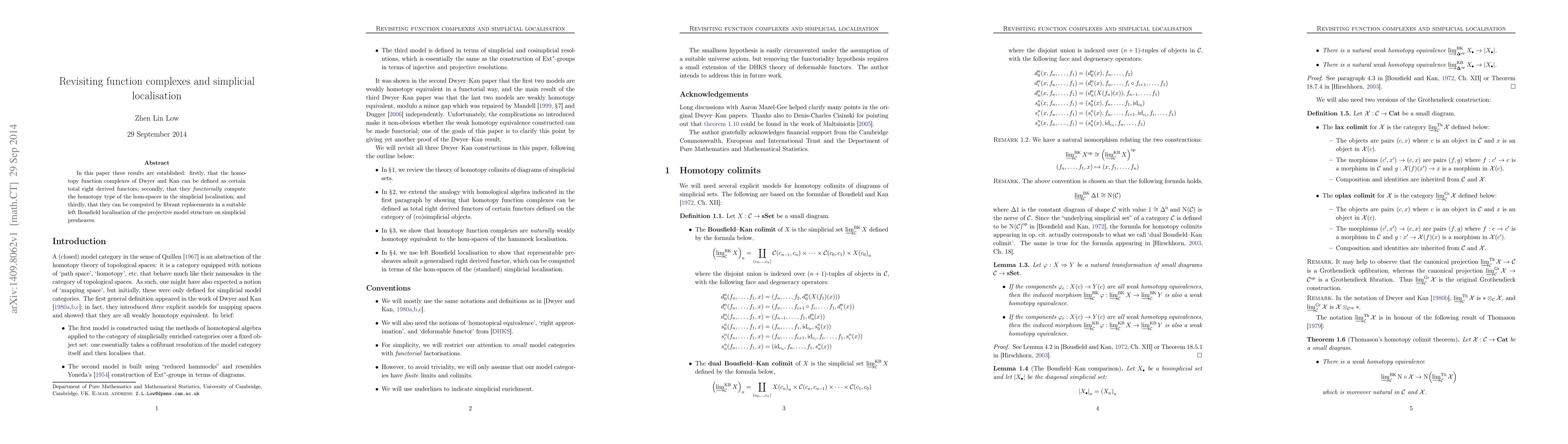 This paper establishes that Dwyer and Kan's homotopy function complexes are total right derived functors, functorially compute hom-spaces in simplicial localisation, and can be computed via fibrant replacements in a left Bousfield localisation of simplicial presheaves.